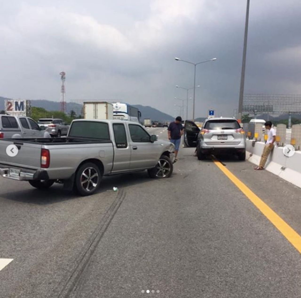 "คนที่ขับรถคันนี้ปลอดภัยดีนะคะ ไม่ต้องห่วง ขับรถจากพัทยา กำลังจะกลับมาจัดรายการค่ะ เข้ามอเตอร์เวย์มาได้พักเดียว ขับๆอยู่มีเสียงดัง “ปัง” สนั่นหวั่นไหว แล้วมีเสียงแกร๊งๆๆ ในใจคิดว่า เราไปลากอะไรติดล้อมาด้วยหรือเปล่าหว่า