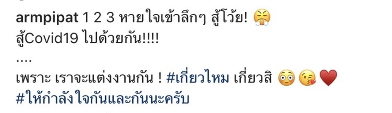โดย น้ำฝน ได้โพสต์ภาพพรีเวดดิ้ง พร้อมกับเขียนข้อความนับถอยหลัง ใกล้ถึงกำหนดวันจัดงานแล้ว ส่วนทางด้าน อาร์ม พิพัฒน์ ก็ได้โพสต์ภาพคู่ว่าที่เจ้าสาว พร้อมกับเขียนข้อความสู้โควิด-19 ไปด้วยกัน "1 2 3 หายใจเข้าลึกๆ สู้โว้ย! สู้Covid19 ไปด้วยกัน!!!! เพราะ เราจะแต่งงานกัน! #เกี่ยวไหม เกี่ยวสิ #ให้กำลังใจกันและกันนะครับ"