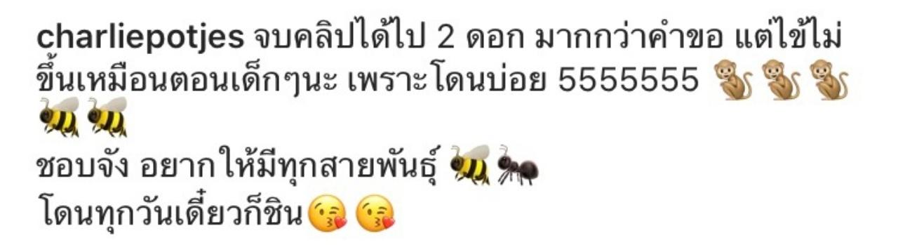 ล่าสุด แน็ก ได้โพสต์คลิปที่ตนเองเข้าไปทักทายกลุ่มฝูงตัวต่อ และผึ้ง ที่อยู่รวมกันเป็นกลุ่มใหญ่บนกิ่งไม้หลังบ้าน พร้อมกับเอามือเข้าไปจับทักทายตัวต่อยักษ์ ซึ่งเจ้าตัวได้เขียนบรรยายคลิปไว้ว่า "จบคลิปได้ไป 2 ดอก มากกว่าคำขอ แต่ไข้ไม่ขึ้นเหมือนตอนเด็กๆ นะ เพราะโดนบ่อย 555555 ชอบจัง อยากให้มีทุกสายพันธุ์ โดนทุกวันเดี๋ยวก็ชิน"