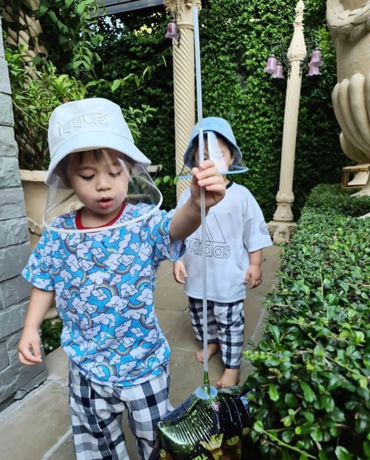 ล่าสุด ชมพู่ ได้โพสต์ภาพที่ 2 หนุ่ม น้องสายฟ้า น้องพายุ สวมหมวกซึ่งมีพลาสติกคลุมรอบบริเวณใบหน้า เพื่อเป็นการกันละอองน้ำลาย ละอองฝุ่น และเชื้อโรคได้ พร้อมกับเขียนแคปชั่นว่า "ถูกใจมากฮะ" งานนี้พี่ป้าน้าอาที่ติดตามต่างเข้ามาบอกเป็นเสียงเดียวกันว่า น่ารัก ไปหาซื้อมาใส่บ้างดีกว่า ต้องบอกเลยว่า พี่สาย พี่พา เป็นผู้นำแฟชั่นตั้งแต่เด็กเลยนะเนี่ย.