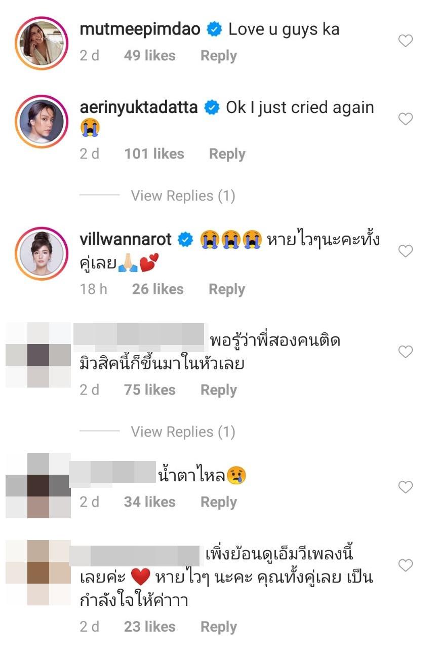 ซึ่งหลังจากนั้นก็มีแฟนๆ เข้ามาคอมเมนต์บอกว่า ตอนที่ทราบข่าวว่า ลีเดีย-แมทธิว ติดเชื้อโควิด-19 ก็นึกถึงเอ็มวีนี้เหมือนกัน พร้อมทั้งอวยพรให้หายป่วยไวๆ รวมไปถึงคนบันเทิงที่เข้ามาให้กำลังใจอย่างต่อเนื่องด้วย.