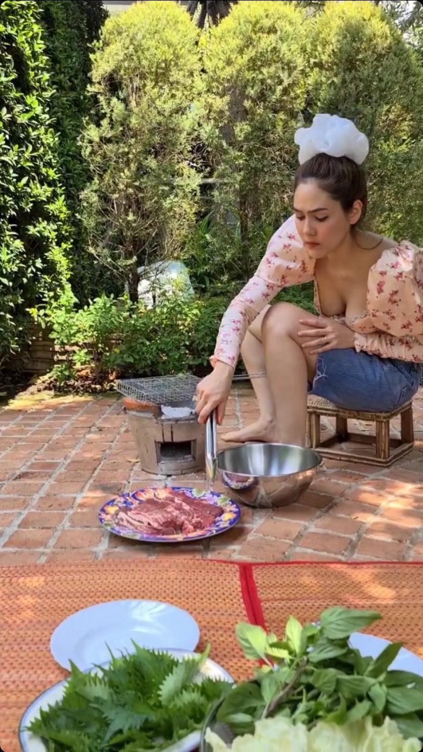 และล่าสุด สาวชมพู่ก็โพสต์คลิปปูเสื่อย่างเนื้อกินกันที่บ้าน โดยสาวชมเป็นคนลงมือนั่งย่างเนื้อด้วยตัวเอง ถึงในคลิปจะไม่ได้กลิ่นของเนื้อย่าง แต่บอกเลยว่าคงจะหอมฟุ้งน่ากินสุดๆ ไปเลย
