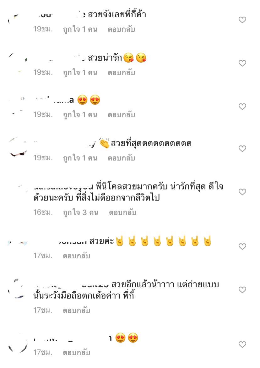 โดยชาวเน็ตคนดังกล่าว ได้โผล่มาคอมเมนต์ใต้รูปว่า "พี่นิโคลสวยมากครับ น่ารักที่สุด ดีใจด้วยนะครับ ที่สิ่งไม่ดีออกจากชีวิตไป" ซึ่งข้อความดังกล่าว ก็มีชาวเน็ตคนอื่นเข้ามากดไลค์ถูกใจในคอมเมนต์นี้ แต่ไม่มีใครมาคอมเมนต์แสดงความคิดเห็นต่อ แต่งานนี้ไม่รู้ว่าชาวเน็ตคนดังกล่าวจะหมายถึงเรื่องอะไร แต่ที่แน่ๆ น่าจะทำให้สาวนิโคลประหลาดใจกับการแสดงความยินดีกับเธอในครั้งนี้