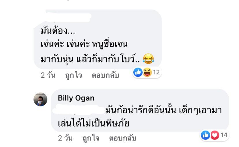 และนอกจากนี้ ยังมีแฟนๆ เข้ามาบอกว่า "มันต้องเพลง เจนค่ะ เจนค่ะ หนูชื่อเจน มากับนุ่น แล้วก็มากับโบว์" ซึ่ง บิลลี่ โอแกน ก็ได้ตอบคอมเมนต์นี้ว่า "มันก็น่ารักดีอันนี้ เด็กๆ เอามาร้องเล่นได้ไม่เป็นพิษภัย"