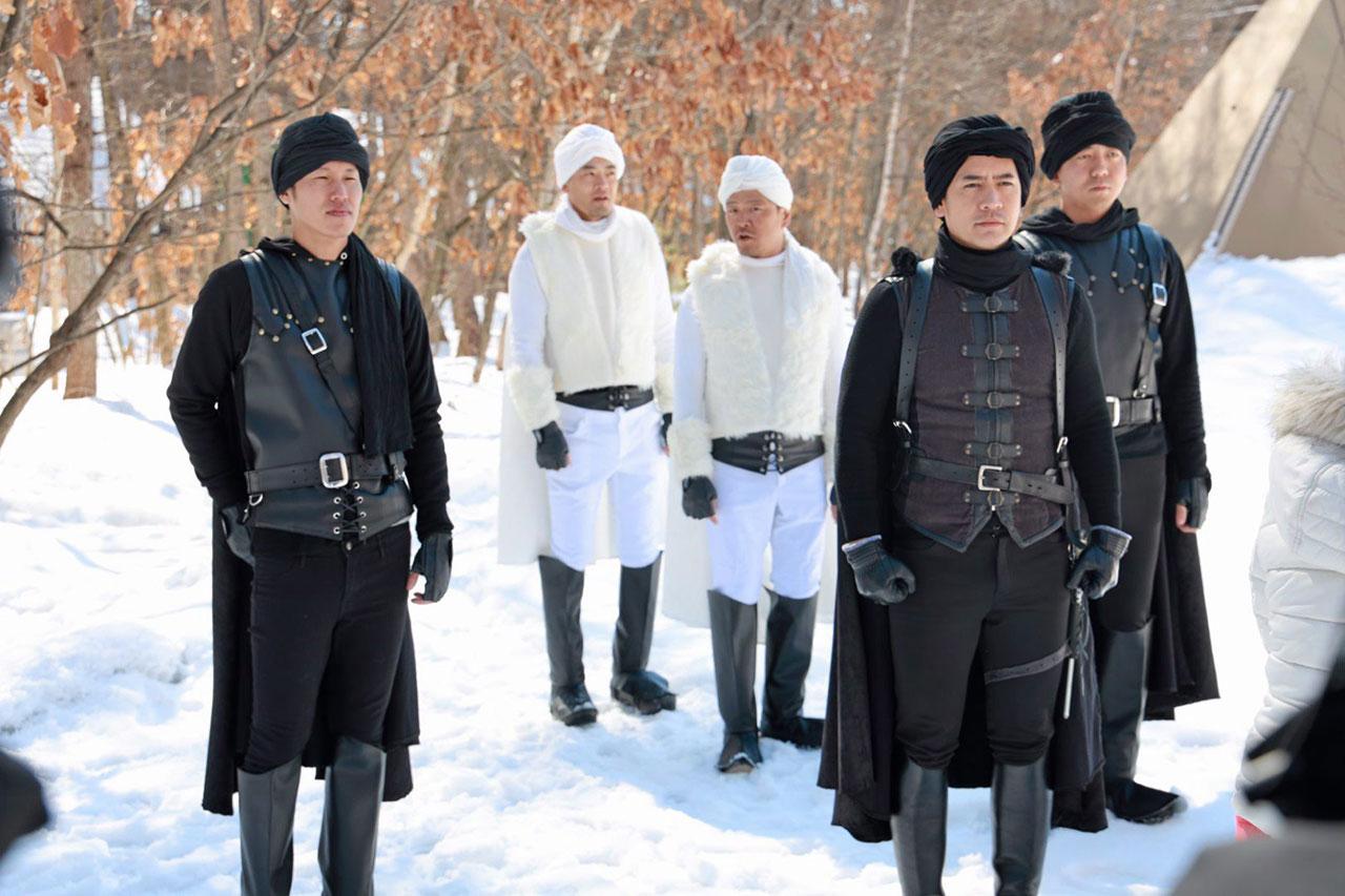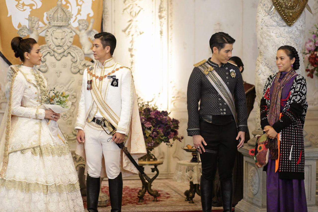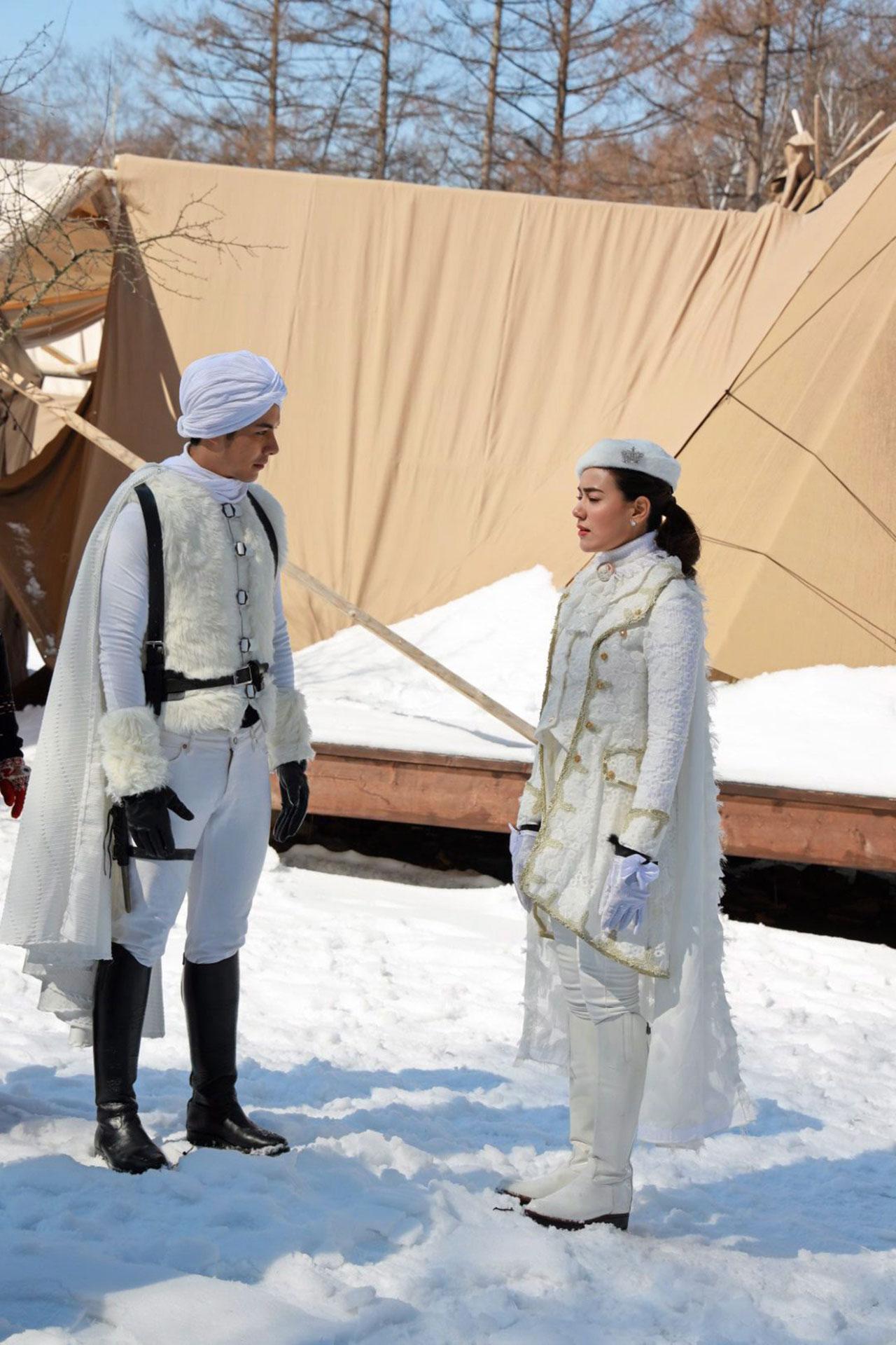 สำหรับเบื้องหลังการถ่ายทำ เริ่มต้นของฉากนี้ถ่ายทำที่เมืองฮอกไกโด ประเทศญี่ปุ่น เป็นฉากการเล่นเกมชิงตัวประกัน ซึ่ง คิม วางแผนกับ มะปราง ว่าหลังจากจบเกมนี้แล้วจะหนีกลับพันธุรัฐ งานนี้ผู้จัด ไก่-วรายุฑ สั่งเนรมิตเต็นท์ขนาดใหญ่หลายหลังสร้างบนลานหิมะขาวโพลน จนมาถึงฉากที่ ติ๊ก พา คิม มาเข้าพิธีถวายพระยศจึงย้ายมาถ่ายที่สตูดิโอแถวเลียบทางด่วนรามอินทรา ซึ่งมีการเซตฉากให้อลังการงานสร้าง แน่นอนว่าเสื้อผ้าหน้าผมเครื่องแต่งกายจัดเต็ม โดยมีนักแสดงหลักมาเข้าฉากพร้อมหน้า รวมถึงนักแสดงสมทบที่มีทั้งเหล่าทหาร พร้อมทั้งดนตรีบรรเลง ยิ่งทำให้ดูหรูหราไฮโซโบใหญ่...ตามชมภาพสวยงามที่ชวนประทับใจของฉากนี้ได้ คืนนี้ ทางช่อง 3.