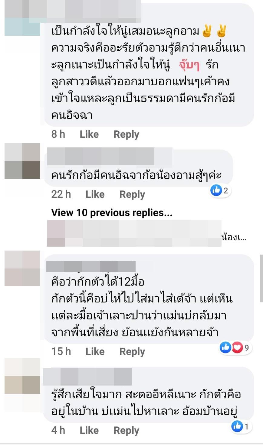 จึงอยากให้พี่น้องทุกๆ คนได้เข้าใจ หนูมาจาก กทม. วันที่ 26 ตอนนี้ได้ 12 วันแล้ว อีก 2 วัน ถึงจะครบ 14 วัน แต่หนูก็ไม่กล้าไปไหนอยู่ดี เพราะตัวหนูเองก็กลัวเหมือนกันค่ะ #ขอบคุณทุกความห่วงใย”