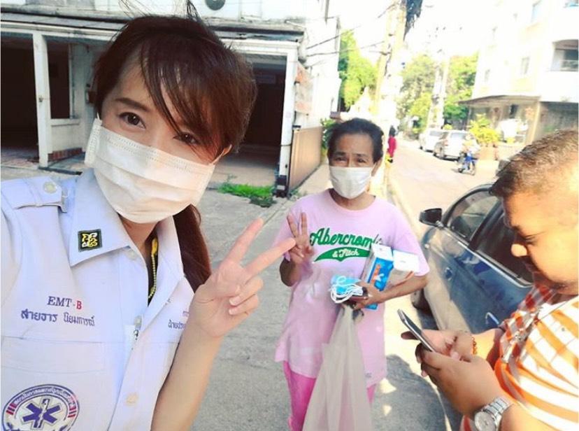 ตอนนี้เราทุกคนแย่กันหมด ต่ายก็อยากจะช่วยแม่ เห็นแม่ว่างก็เลยจะเอา Face shield ไปให้แม่ทำแก้เบื่อเพราะต่ายจะเอาไปแจกให้ที่โรงพยาบาล แต่ทำกับต่ายมันไม่ได้เงินเนอะ แต่ก็ยังดีกว่าอยู่ว่างๆ ก็อยากจะให้แม่ได้ทำอะไรแก้เบื่อไปค่ะ".