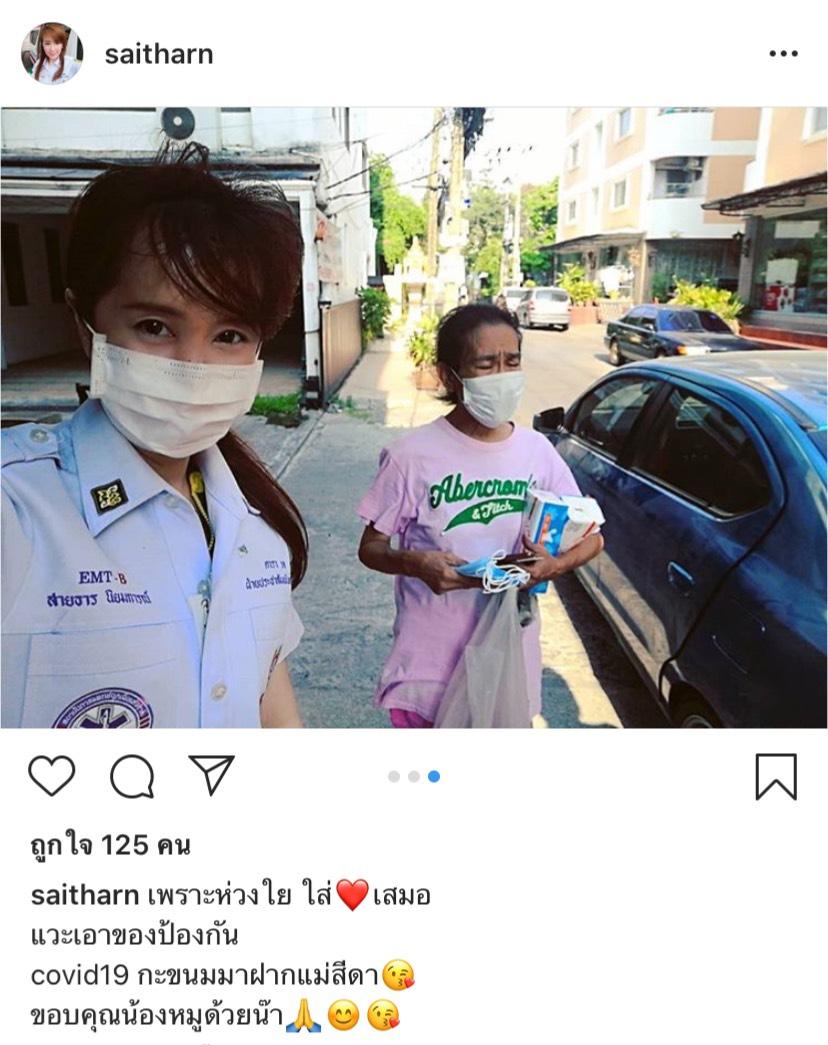 และล่าสุดสาว ต่าย สายธาร ก็ได้ไปหาแม่สีดาในช่วงที่สถานการณ์โควิด-19 แพร่ระบาด ด้วยการเอาอุปกรณ์ป้องกันเชื้อไวรัสโควิด-19 และขนมไปฝากแม่สีดา โดยสาวต่ายโพสต์รูปและแคปชั่นว่า "เพราะห่วงใย ใส่ใจเสมอ แวะเอาของป้องกัน covid-19 กะขนมมาฝากแม่สีดา ขอบคุณน้องหมูด้วยน๊า"
