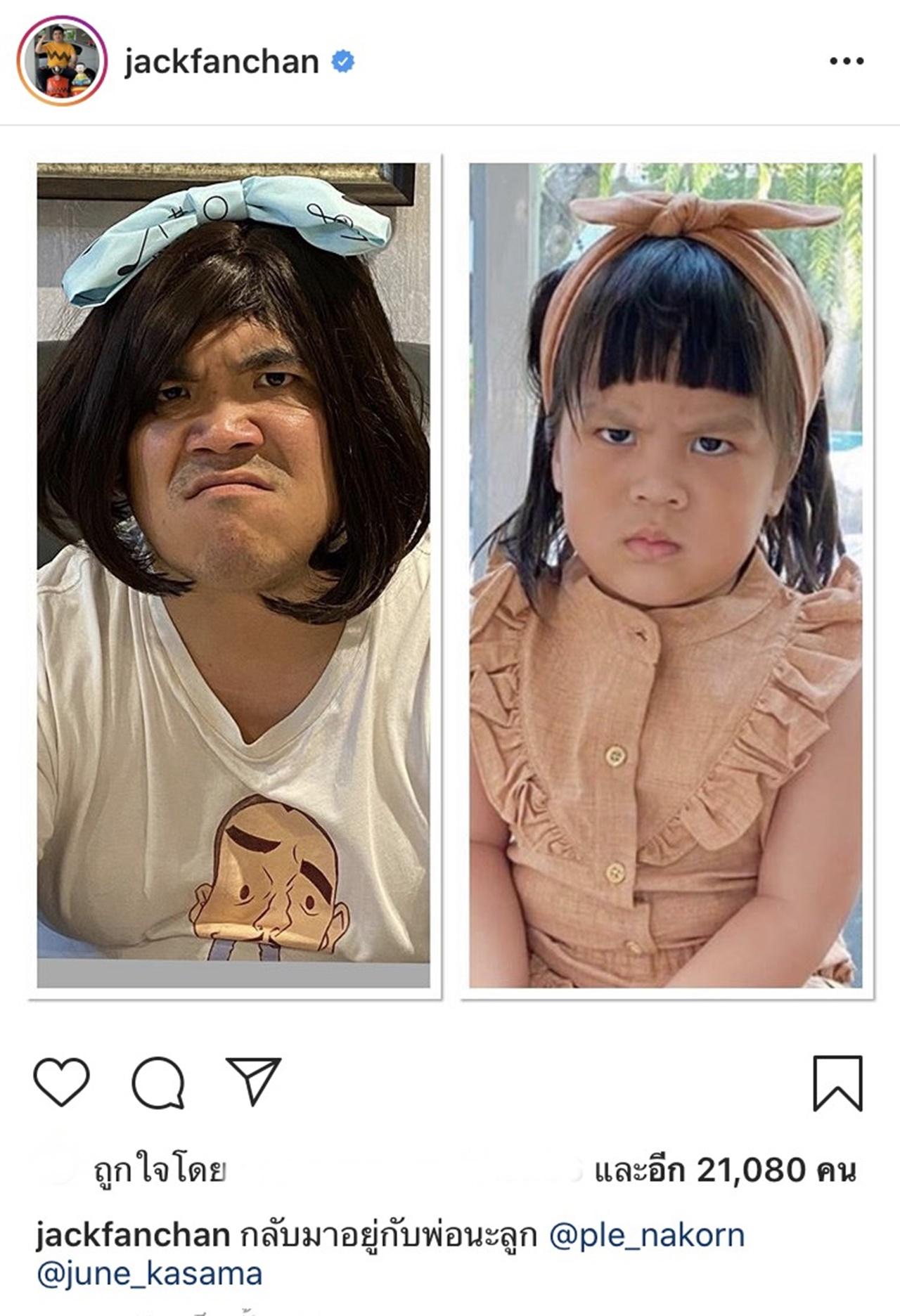 เท่านั้นยังไม่พอ เหมือน พ่อเปิ้ล จะคาใจ ก็ได้โพสต์ภาพยืนยันในความเหมือนของ น้องออเกรซกับแจ๊ค แฟนฉัน แล้วเขียนว่า "กูไม่เคลียร์.... @jackfanchan" และ แจ๊ค ก็เข้ามาตอบกลับอย่างไวว่า "ลูกพ่อ"
