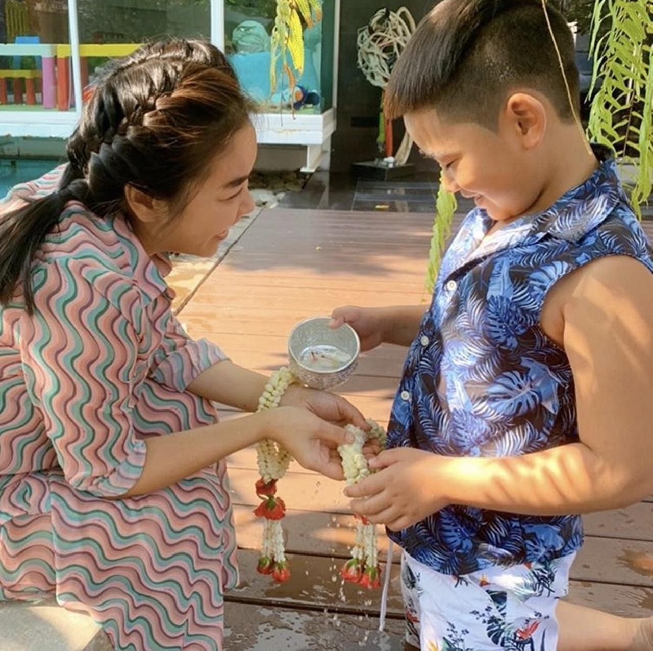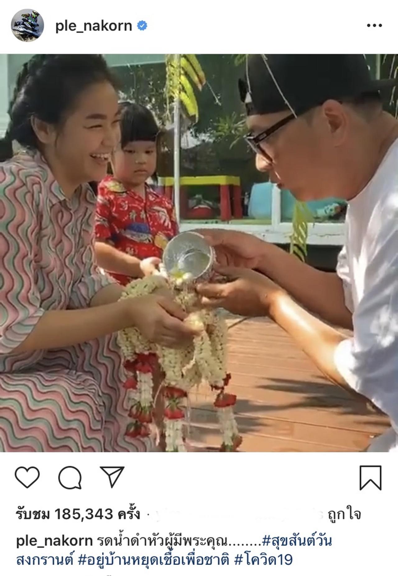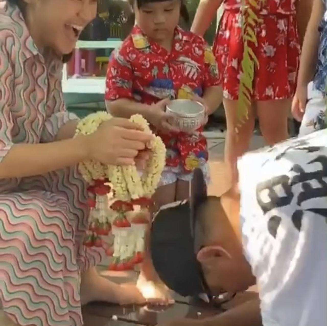 ดังเช่นครอบครัวของ เปิ้ล นาคร ที่ได้พาลูกๆ ทั้ง 4 ออกัส, ออก้า, ออกู๊ด และ ออเกรซ สืบสานประเพณีไทย จัดรดน้ำดำหัวเล็กๆ กันในบ้าน ซึ่งลูกๆ ได้มาต่อคิวรดน้ำดำหัว แม่จูน แต่พีคสุดที่รูปสุดท้าย พ่อเปิ้ล นาคร ก็มารดน้ำดำหัวพร้อมกับก้มกราบ แม่จูน กับลูกๆ ด้วยเหมือนกัน ซึ่ง พ่อเปิ้ล บอกว่า คนนี้รักและเคารพสุดๆ ทำเอาแฟนๆ เข้ามาแซวกันเป็นจำนวนมาก ว่ารูปสุดท้ายพีคมากจริงๆ นี่เป็นลูกชายคนสุดท้องของ แม่จูน แน่ๆ.