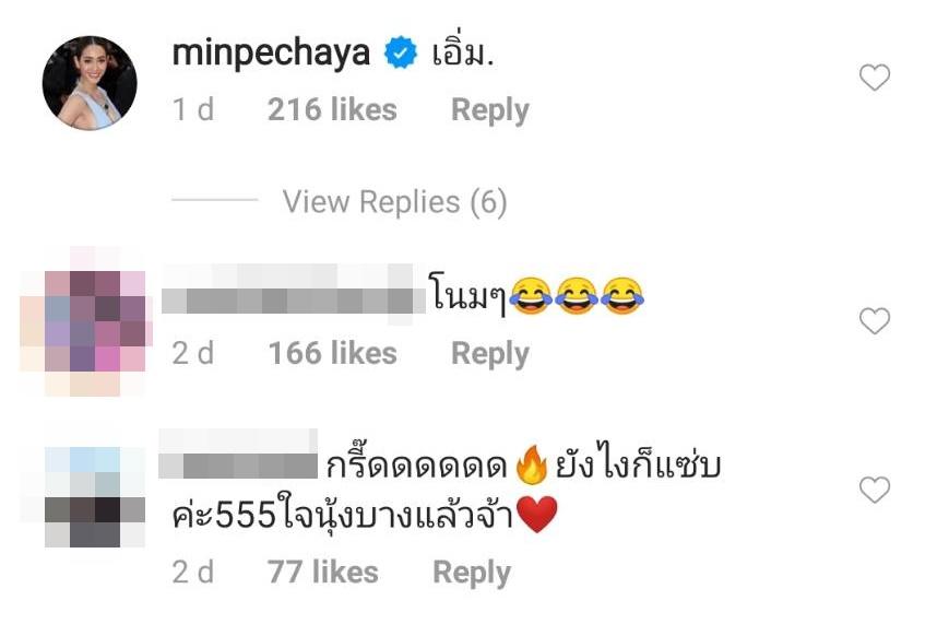 งานนี้เลยมีแฟนๆ เข้ามาคอมเมนต์แซวเพียบ อาทิ แก้มออกแล้วนะ เห็นแล้วใจคอไม่ค่อยดี อ้วนแหละ นมแน่นเชียว บ้างก็ทักให้โกนหนวดได้แล้ว อีกทั้งยังมีเพื่อนในวงการบันเทิงอย่างนางเอกสาว มิน พีชญา ถึงกับบอกว่า “เอิ่ม”
