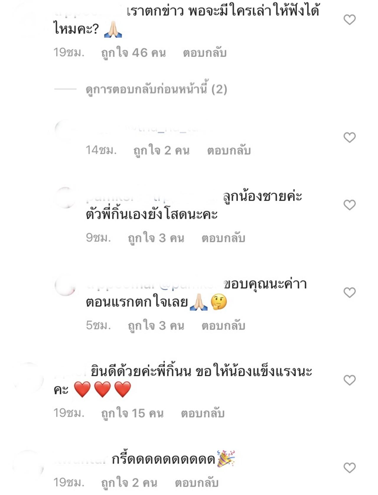 ก่อนที่ กิ้น จะมาเพิ่มแฮชแท็กว่า "#niece" พร้อมกับบอกทุกคนว่า เป็นลูกของน้องชาย และคนที่ติดตามช่วยอธิบายเพิ่มว่า เป็นลูกของน้องชายกิ้น ตัวกิ้นเองยังโสดอยู่