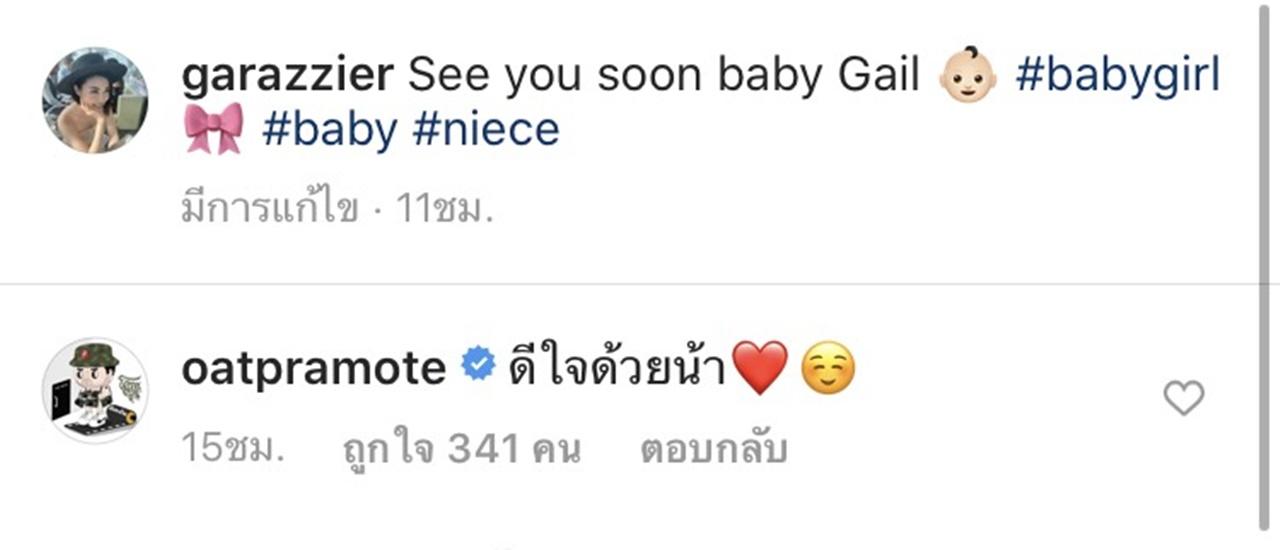 "See you soon baby Gail #babygirl #baby" ซึ่งงานนี้ทำเอาหลายคนต่างตกใจและยินดีไปตามๆ กัน และบางคนก็ออกอาการงงว่า ตกข่าวรึเปล่า ติดตามมาตลอด แต่เพิ่งรู้เรื่องท้อง