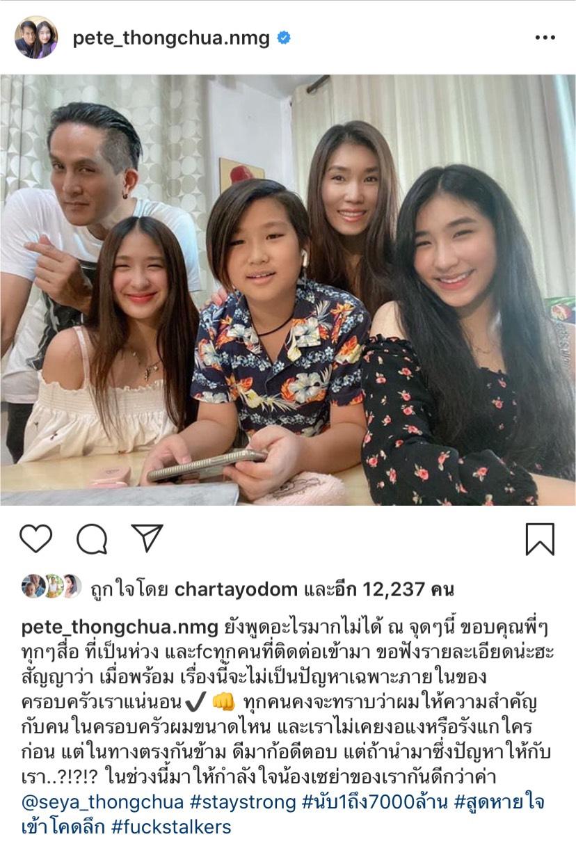 และล่าสุด พีท ทองเจือ หัวหน้าครอบครัวก็ได้ออกมาโพสต์ข้อความถึงเรื่องราวที่เกิดขึ้นบนอินสตาแกรมของตัวเอง ที่เป็นรูปครอบครัว พร้อมกับแคปชั่นว่า