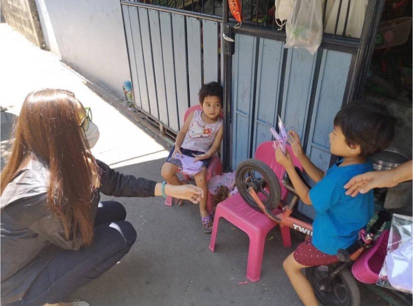 "วันนี้ฟ้าใสมีโอกาสเอาแมสก์ผ้าที่ทำกับเพื่อนๆ มาแจกที่ชุมชนบางกระบือ ดีใจมากค่ะที่ได้เป็นส่วนหนึ่งในการให้กำลังใจคนไทยในช่วงวิกฤติโควิดแบบนี้ แม้อาจจะเป็นส่วนเล็กๆ ก็ตาม