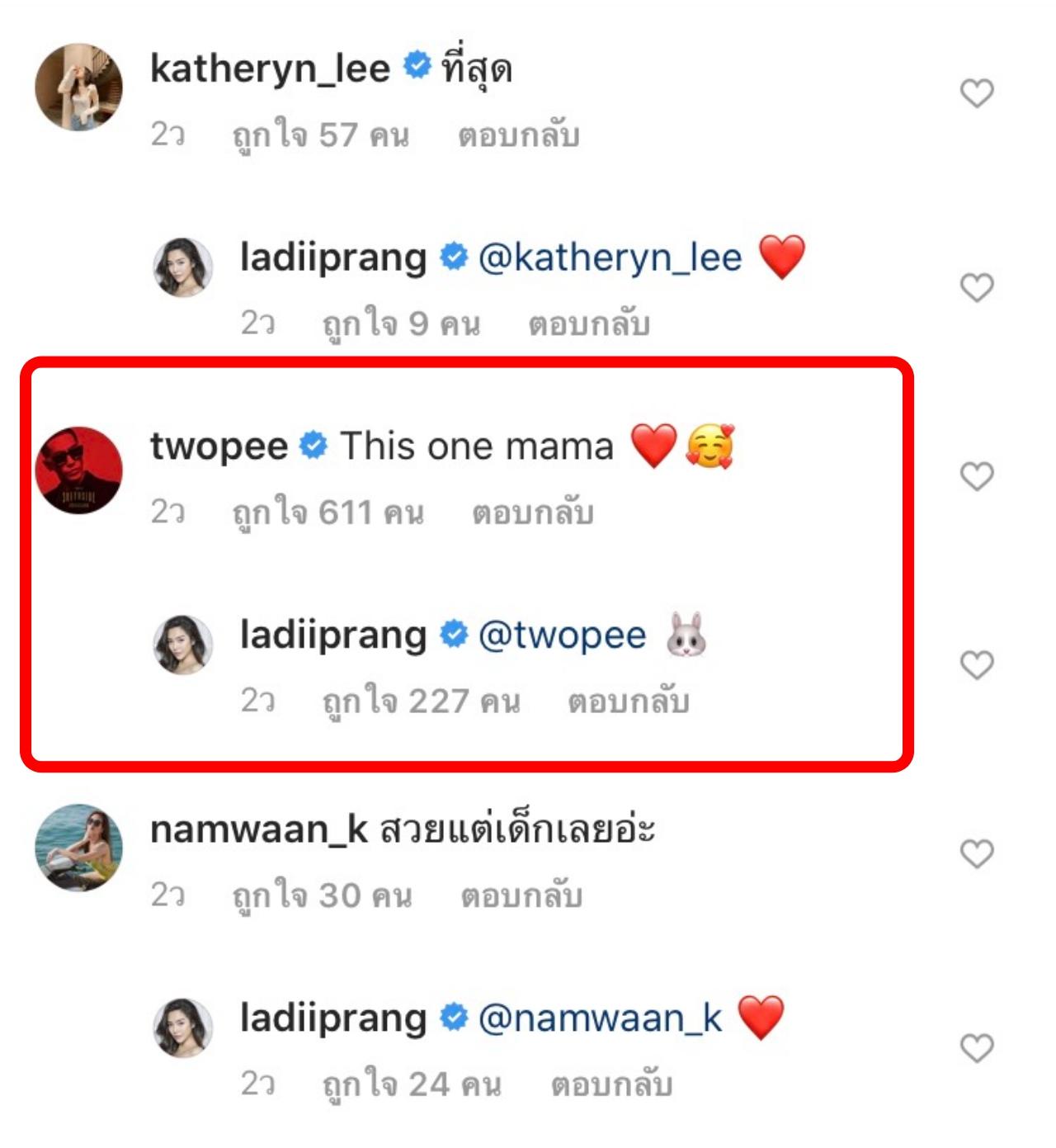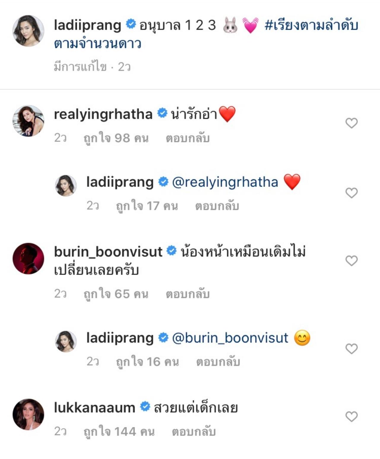 ซึ่งตอนเด็กนั้น ต้องบอกเลยว่า ปราง ตาคม ฉายแววความสวยมาแต่เด็ก แฟนๆ ต่างเข้ามาบอกว่า สวยแต่เด็ก น่ารักมาก หน้าไม่เปลี่ยนเลย ส่วนทางด้านหวานใจ โต้ง ทูพี ก็ได้เข้ามาคอมเมนต์ว่า "This one mama" ปราง ก็ได้ตอบกลับเป็นรูปกระต่าย