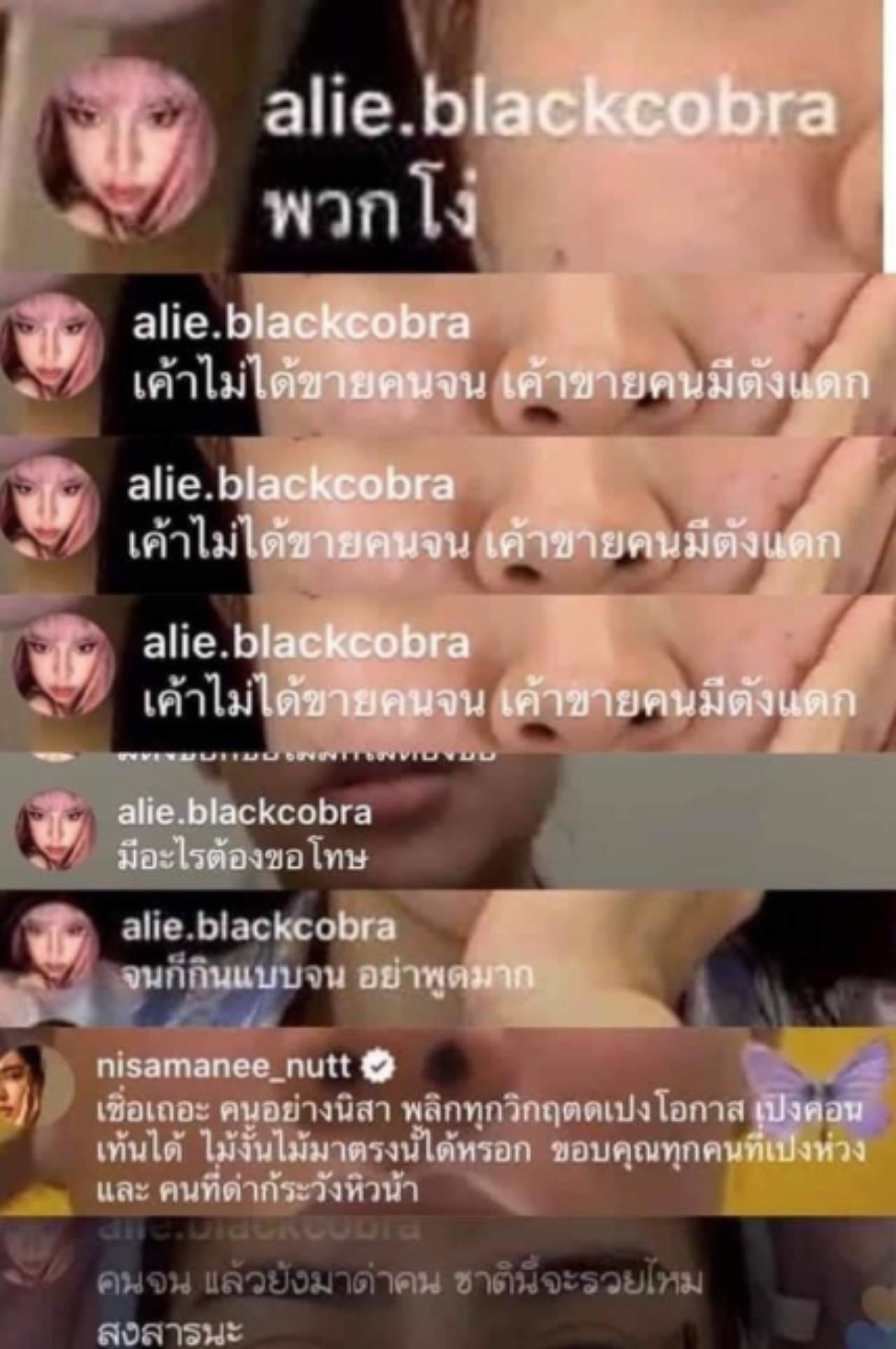 และมีการโต้ตอบในโลกโซเชียลจาก ตูน หิ้วหวี เพื่อนเน็ตไอดอลของ นัท นิสา ในลักษณะที่ว่า ทำแกงให้คนรวยซื้อ ถ้าจนก็ไม่ต้องกิน จนเป็นดราม่าเหยียดคนจน จนขึ้นเป็นเทรนด์ทวิตเตอร์ ทั้ง #ตูนหิ้วหวี #นัทนิสา #แกงเขียวหวาน250 และมีการรวมตัวกันอันฟอลโลว์เน็ตไอดอลทั้งสองคน