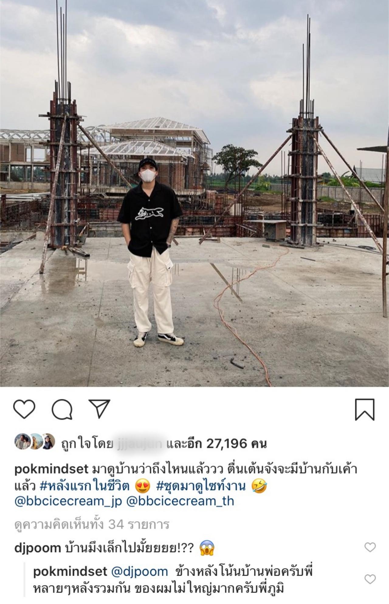หลังจากที่หนุ่มป๊อกโพสต์รูปดังกล่าวไป ดีเจภูมิ ภูมิใจ ก็เข้ามาแซวหนุ่มป๊อกว่า "บ้านเล็กไปมั้ย" พร้อมกับอีโมติคอนน่าตกใจ งานนี้หนุ่มป๊อกต้องรีบเข้ามาชี้แจงว่า "ข้างหลังโน้นบ้านพ่อครับพี่ หลายๆ หลังรวมกัน ของผมไม่ใหญ่มากครับพี่ภูมิ"
