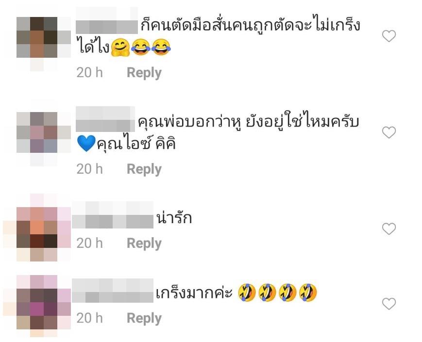 งานนี้เลยมีแฟนๆ เข้ามาคอมเมนต์แซวความน่ารักทั้งช่างตัดผมและลูกค้า บ้างก็แซวว่าหูไม่ต้องเอาออกนะ อยากมีช่างตัดผมแบบนี้จริงๆ เป็นช่างตัดผมที่หุ่นดีมาก