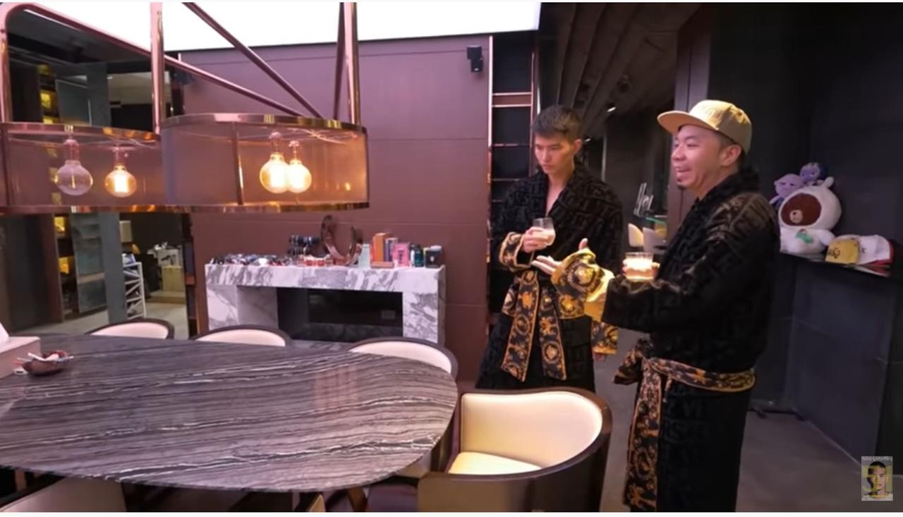 นอกจากนี้ ดีเจภูมิ ก็ได้พาไปดูเฟอร์นิเจอร์แต่ละตัวในบ้าน เริ่มจากโต๊ะกินข้าว ที่ได้แรงบันดาลใจมาจากอมานี เป็นโต๊ะหินอ่อน ราคา 2 แสนบาท เก้าอี้ที่คล้ายกับโรลส์-รอยซ์ ตัวละ 160,000 บาท แต่ที่ยอมลงทุนขนาดนี้ก็เพราะอยากให้เฟอร์นิเจอร์ในบ้านอยู่ได้นานๆ ไป 20-30 ปี และยังดูสวยงามอยู่ ไม่บุบพังไปตามกาลเวลา