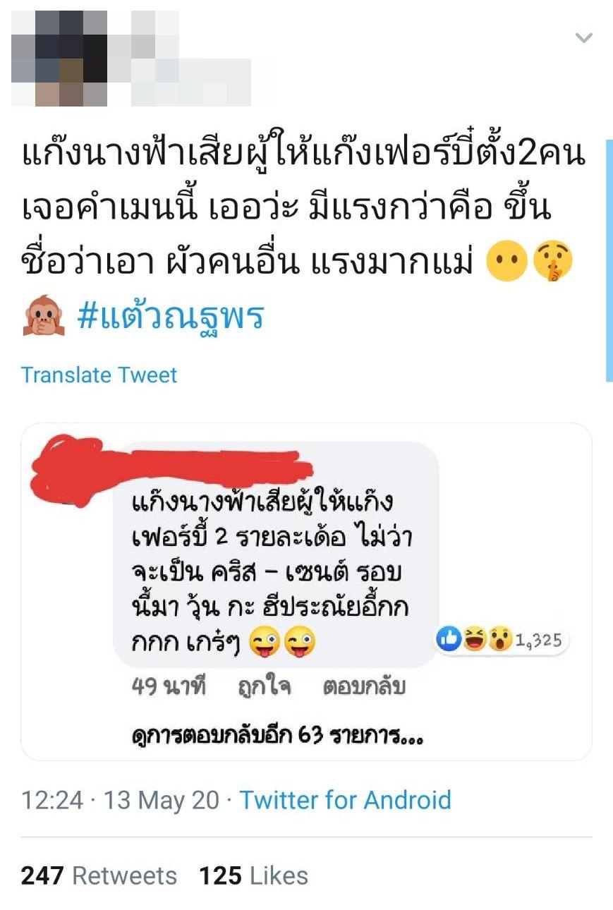 นอกจากนี้ยังมีคนมองว่า แก๊งนางฟ้าเสียผู้ชายให้แก๊งเฟอร์บี้ 2 คนแล้ว คือ เซนต์ ธราภุช ซึ่งเคยมีข่าวคบและเลิกกับ คริส หอวัง ก่อนจะมาคบและแต่งงานกับ มิว นิษฐา และ ไฮโซณัย ซึ่งเคยมีข่าวคบและเลิกกับ วุ้นเส้น ก่อนจะมีข่าวคบกับ แต้ว แต่ทั้งนี้เรื่องราวทั้งหมดจริงๆ จะเป็นอย่างไร คงต้องรอให้ แต้ว ณฐพร ออกมาพูดให้ชัดเจนจะดีกว่า.