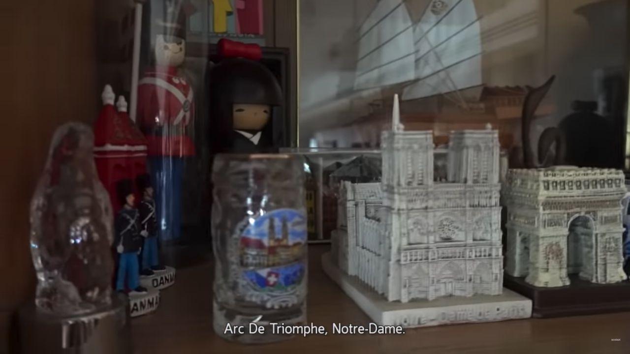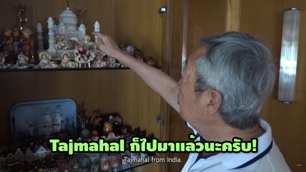 จากนั้นถึงเวลาพาชมของสะสมในบ้านของคุณปู่ ซึ่งเป็นของที่ระลึกจากต่างประเทศ โดยของสะสมจากประเทศจีนมาเป็นเซตแรกๆ ซึ่งคุณปู่บอกว่าเวลาไปประเทศต่างๆ ก็จะซื้อทุกประเทศ เพื่อจะได้รู้ว่าเรามาประเทศไหนบ้าง จากนั้นก็พาไปดูของสะสมจากหลายประเทศ อาทิ ประตูชัยฝรั่งเศส, มหาวิหารน็อทร์ดาม, ทัชมาฮาล อินเดีย ฯลฯ ซึ่งดูไปดูมาบอกเลยว่าเยอะมาก ต้องมีตู้เก็บของหลายชั้นทีเดียว