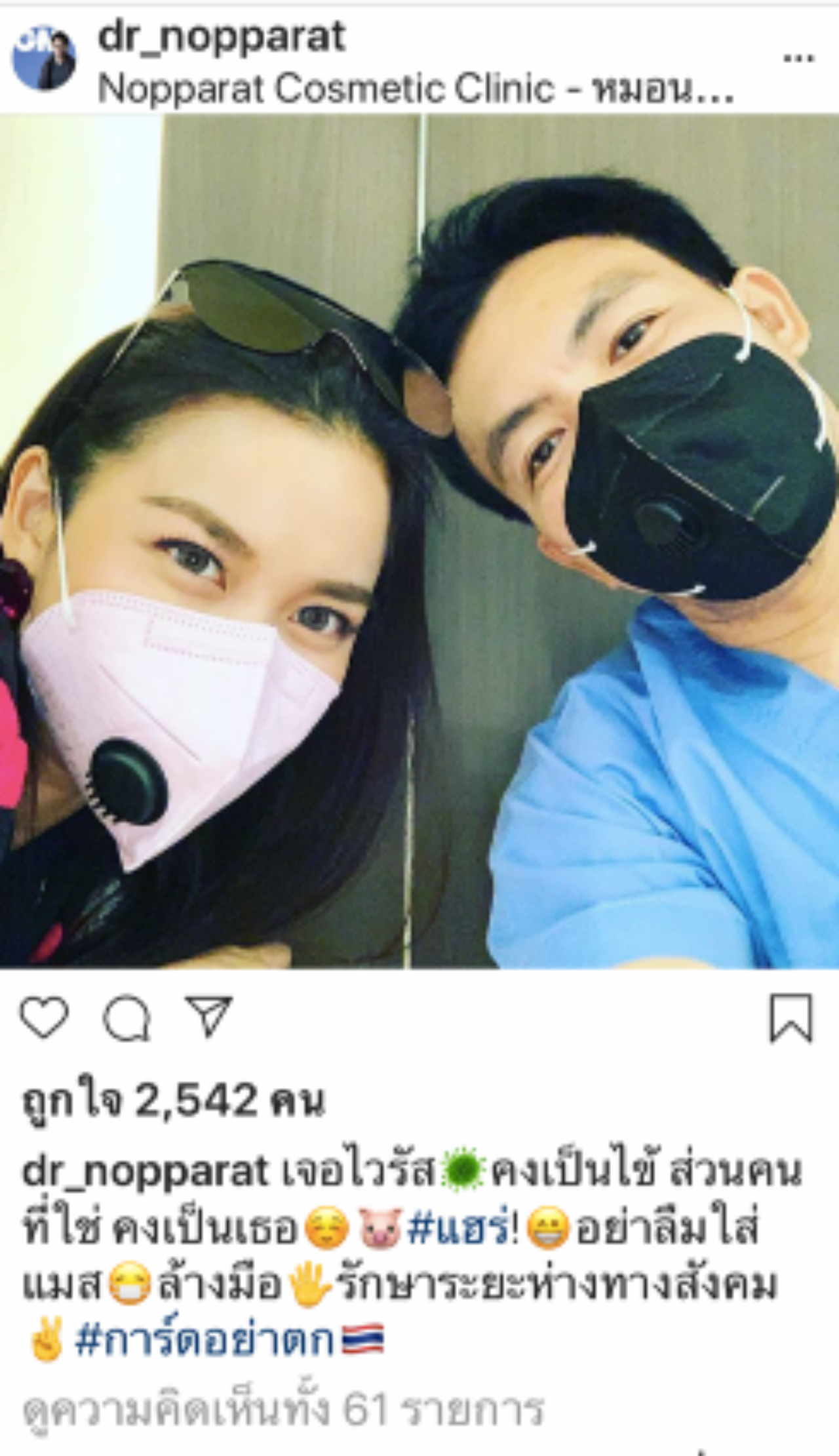 จะรักจริงหรือแค่พี่น้องธรรมดาเท่านั้น ต้องไปส่องๆ ไอจีหมอสอง พบภาพน่าสังเกต อ๊ะๆ มีพิรุธนะ มีความหวานทะลุไอจีอยู่ ตั้งแต่ชวนกันไป ถวายสังฆทานที่วัด ร่วมด้วยช่วยกันบริจาคหน้ากากอนามัย และอีกหลายอย่างให้กับหมอ เพื่อสู้ๆ โควิด