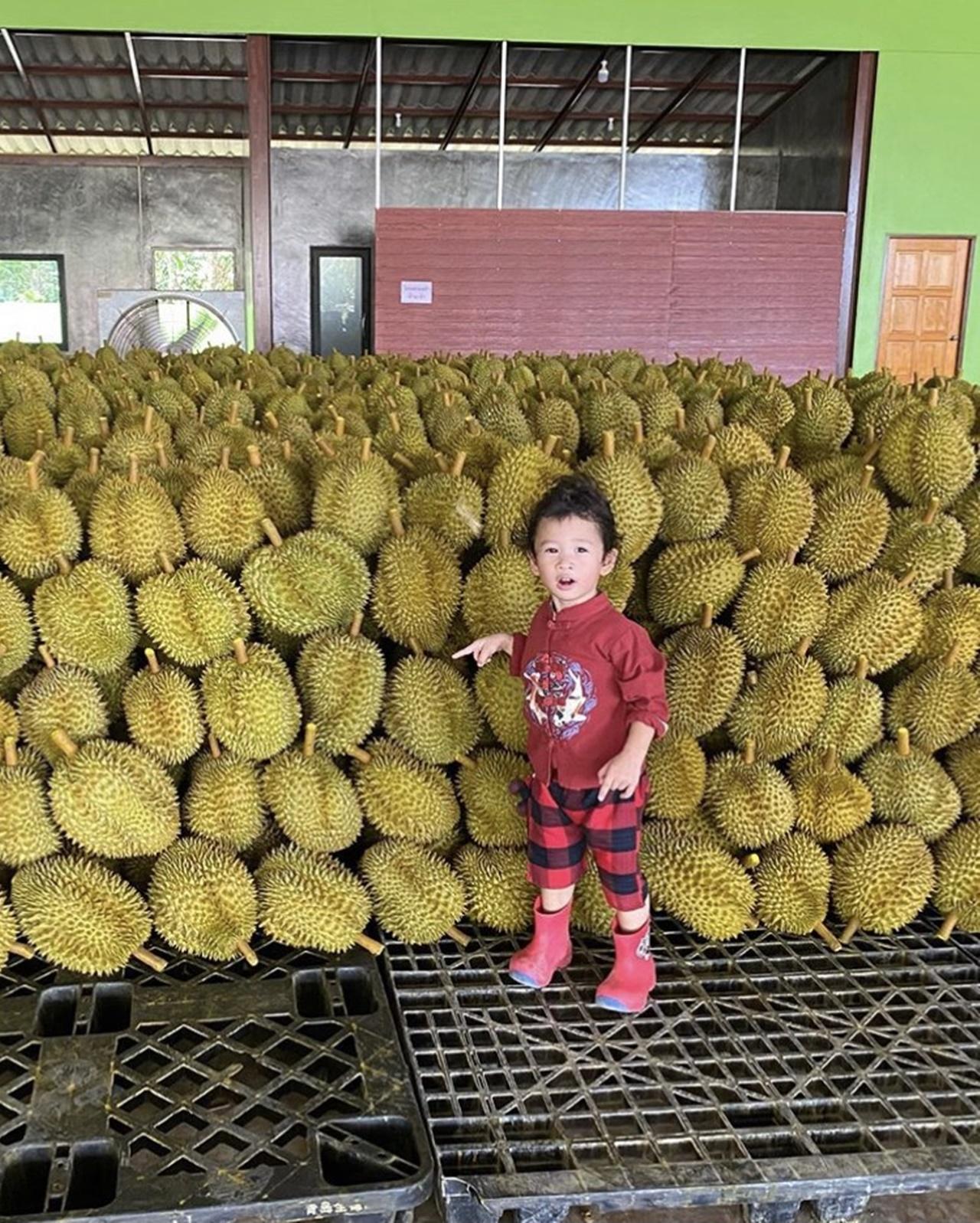ด้านแม่แอน ก็ได้โพสต์ภาพของลูกชาย และเขียนบรรยายไว้ว่า เจ้าสัวน้อยวัย 2 ขวบ เดินหัวเปียก คุมงานจนเหงื่อไหล อีกทั้งช่วยคัดผลไม้ แพ็กลงกล่องอีกด้วย ซึ่งแฟนๆ ที่ติดตามต่างก็เอ็นดูเด็กน้อยในวัย 2 ขวบคนนี้มากทีเดียว.