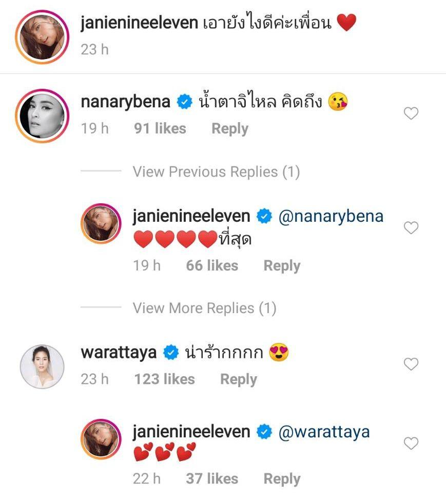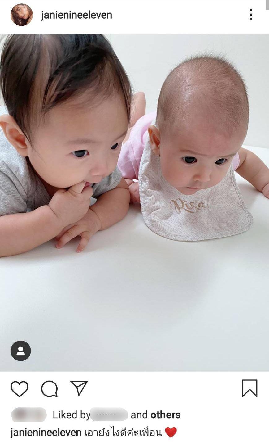 โดย เจนี่ โพสต์ภาพ น้องโนล่า คู่กับ น้องลิษา พร้อมทั้งเขียนแคปชั่น “เอายังไงดีค่ะเพื่อน” และแท็กไปที่ไอจี แอน อลิชา ทำเอาแฟนๆ ใจละลายกับความน่ารักคูณสองของ 2 สาวตัวน้อยๆ ส่วนคุณแม่แก๊งนางฟ้าอีกคน นานา ไรบีนา บอกว่า “น้ำตาจิไหล คิดถึง” และ เจนี่ ตอบกลับเป็นอีโมจิหัวใจและบอกว่า “ที่สุด” ด้าน ภูริ หิรัญพฤกษ์ คุณพ่อของน้องลิษา เข้ามาคอมเมนต์ “เพื่อนๆ แบ่งผมมาให้ลิษาบ้างเพื่อน” ทำเอา เจนี่ คอมเมนต์อีโมจิขำน้ำตาไหล