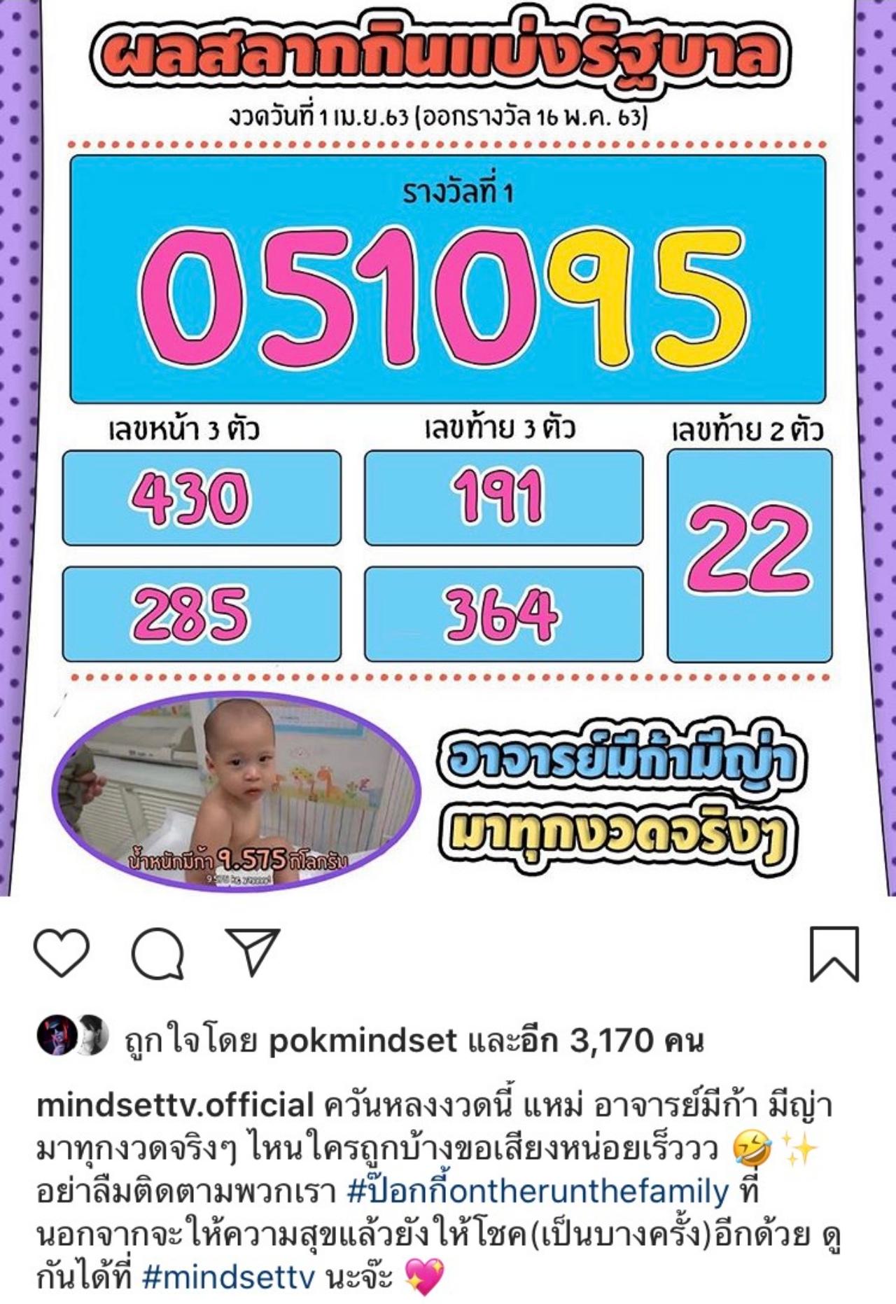 ซึ่งก่อนหน้าในวันที่ลอตเตอรี่จะออกรางวัล ป๊อก ก็ได้โพสต์คลิปพา มีก้า-มีญ่า ไปพบคุณหมอตามนัดเพื่อฉีดวัคซีนตามกำหนดอายุ พร้อมกับชั่งน้ำหนัก สัดส่วน และนำมาบอกแฟนๆ ที่รอติดตาม