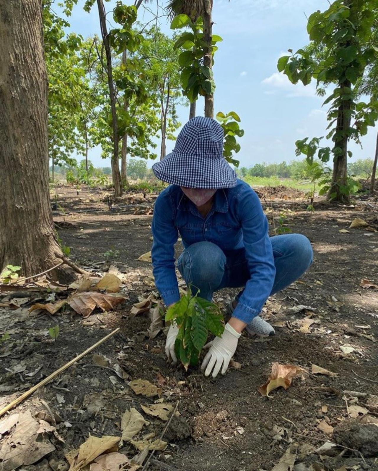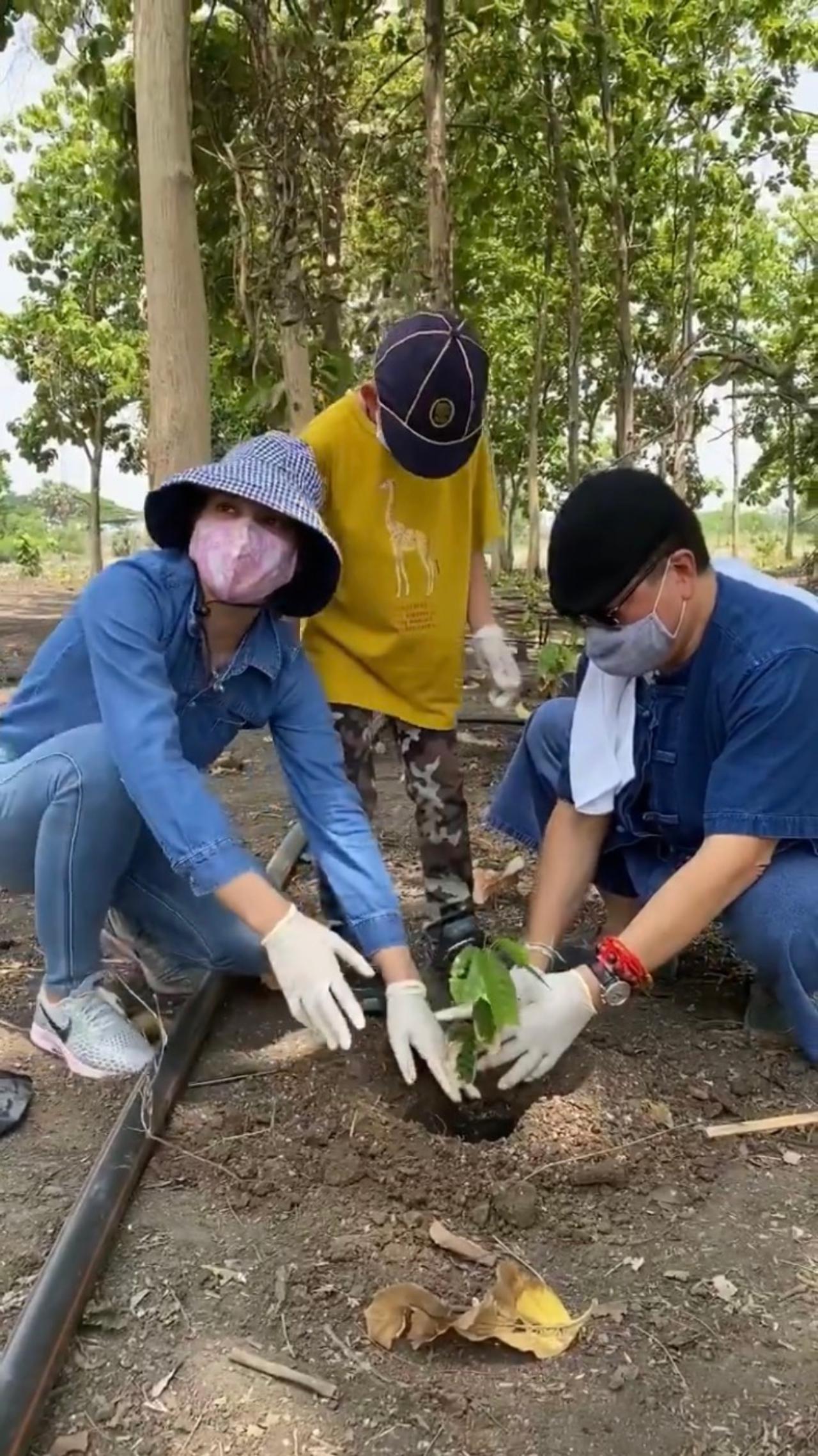 "วันนี้มาช่วยคุณบุญชัยกับคุณข้าวหอมลงต้นโกโก้ ที่ไร่เบญจรงคกุล 1,000 ต้น บงกชน้ำหนักลง3โล #สนุกมากได้ทำสวน #ถามว่าร้อนมั้ยตอบเลยว่ามากๆๆๆๆๆเเต่ชอบความร้อนค่ะ"