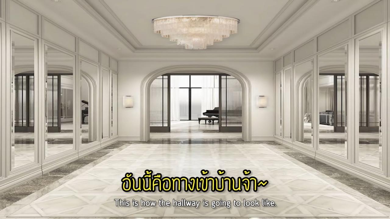 โดยบ้านหลังนี้มีทางเข้าบ้านสวยหรูอลังการไม่เบา มีโคมไฟสวยๆ ผนังกระจกซ้ายขวาคือห้องเก็บรองเท้า มีโถงทางเดินในบ้าน บริเวณห้องโถงเปิดโล่งไปถึงชั้น 2 (Double Space) ดูโปร่งสบายตา ส่วนห้องทานข้าว ห้องครัว ถูกตกแต่งให้ดูเรียบๆ แต่มีความหรู สบายตา ส่วนห้องนอนของสมคิดจะอยู่ใต้บันได รอบๆ บ้านถูกตกแต่งด้วยต้นไม้ทั้งต้นไม้สีเขียวรวมถึงต้นไม้มีดอก