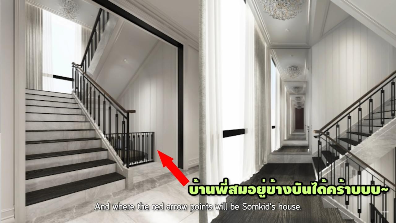 จากนั้น ป๊อก เล่าต่อว่าบ้านที่จะสร้างจะคล้ายๆ หมู่บ้าน มีบ้านคุณพ่อ บ้านผม บ้านพี่สาว บ้านครอบครัวของพีช (พชร จิราธิวัฒน์) ก็จะย้ายไปอยู่ตรงนั้นเหมือนกัน มีทั้งหมด 5 หลัง และตรงนั้นจะมียิม สระว่ายน้ำ คลับเฮาส์ สนามเทนนิส สวนผักออร์แกนิก สนามเด็กเล่น และมีสนามให้ สมคิด น้องหมาสุดรัก ได้วิ่งเล่นด้วย ซึ่ง ป๊อก-มาร์กี้ ก็ได้ไปดูที่ไซต์งานก่อสร้างมาแล้ว พร้อมทั้งหยิบแปลนบ้านมาให้ได้ชมด้วย