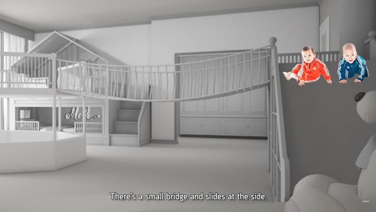 จากนั้นทั้งคู่ก็เผยภาพแปลนห้องนอนของ น้องมีก้า-น้องมีญ่า ลูกสาวลูกชายฝาแฝด ซึ่งมีสไตล์แบบ Sleep&Play ที่ดูมีพื้นที่กว้างมาก เหมือนยกสนามเด็กเล่นมาให้ลูกๆ ได้เล่นในบ้าน มีทั้งสะพาน สไลเดอร์ เรียกว่าจัดหนักจัดเต็มมากๆ ส่วนห้องนอนของ ป๊อก-มาร์กี้ ถูกตกแต่งแบบเรียบหรู มีตู้เก็บกระเป๋าแบรนด์เนมด้วย ห้องแต่งตัวก็ดูอลังการ มีโซนเก็บเครื่องประดับ อีกทั้งยังมีสตูดิโอของป๊อกด้วย