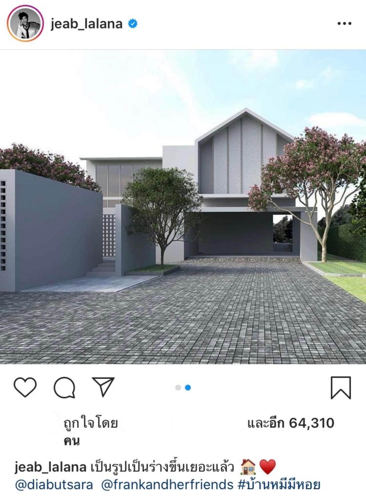 โดยล่าสุด หมอเจี๊ยบ ก็ได้อัปเดตความคืบหน้าของบ้านหลังนี้ผ่านอินสตาแกรมว่า "เป็นรูปเป็นร่างขึ้นเยอะแล้ว" พร้อมติดแท็กแฟนสาว และน้องหมาพันธุ์คอร์กี้ที่เลี้ยงไว้ ซึ่งเป็นสมาชิกของบ้านหลังนี้อีกด้วย