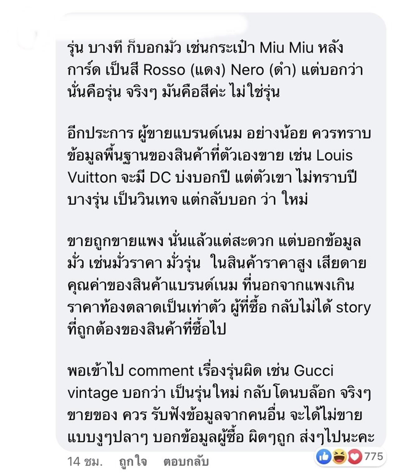 - แต่มีคนมองมุมต่างว่าสินค้ามือสองของใบเตย นั้นใช้ไปเพียงไม่กี่ครั้งสภาพดีมาก ต่างจากที่แม่ค้าออนไลน์บางเจ้าขายถูกกว่าของ ใบเตย ก็จริง แต่สภาพสินค้าไม่ดีเท่าของใบเตย