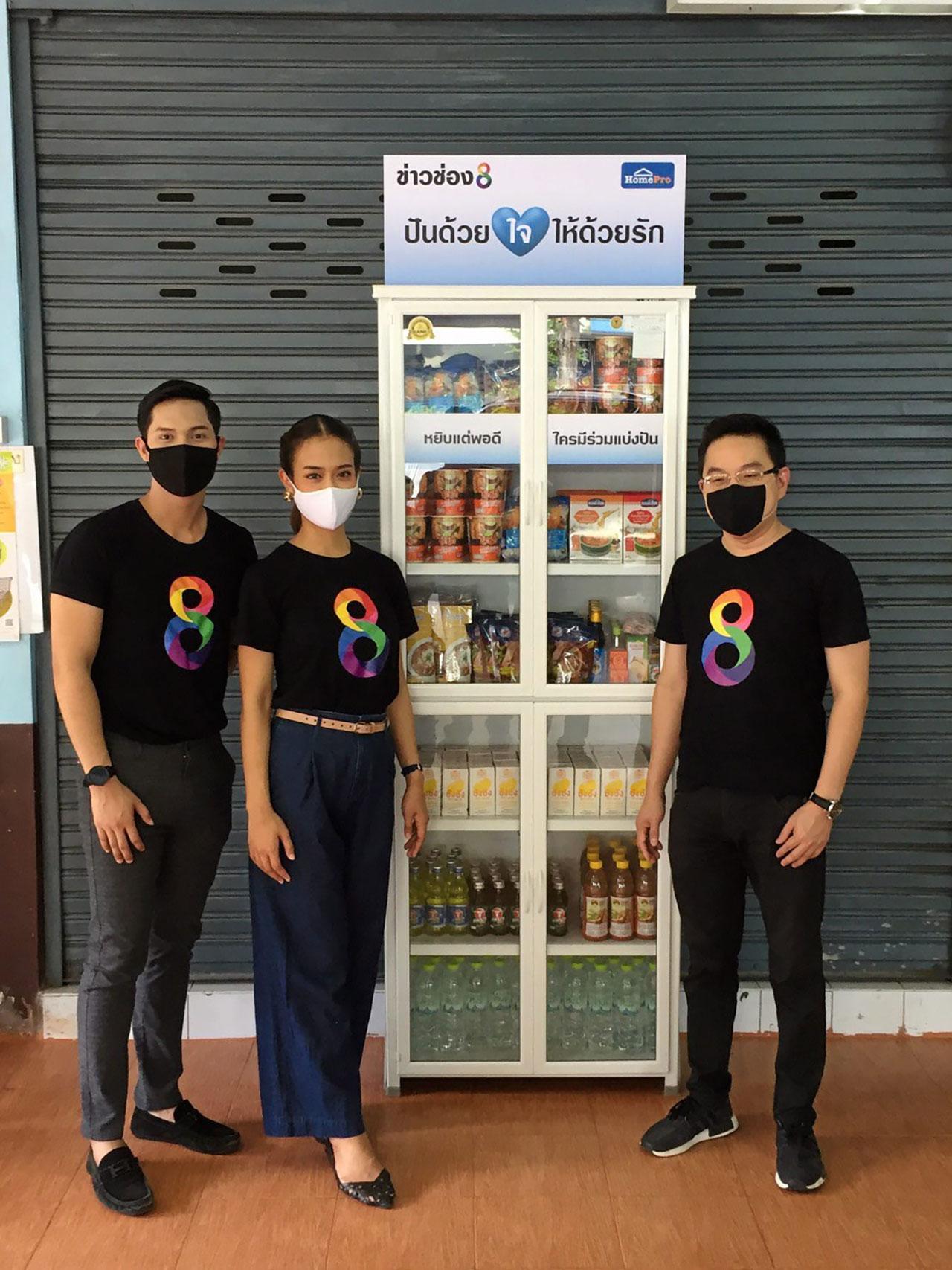 จากผลกระทบการแพร่ระบาดของโควิด-19 นักแสดงและผู้ประกาศข่าว ไปร่วมติดตั้งและใส่ของบริจาคในตู้ปันสุข อาทิ ฟลุ๊ค-จิระ ด่านบวรเกียรติ, ฝ้าย-เวฬุรีย์ ดิษยบุตร, มาร์ค-อภิวิชญ์ จักษ์ตรีมงคล,แซนดี้-ชลิดา กล่ำปาน และผู้ประกาศข่าว อาทิ ออฟ-อัครพล ทองธราดล, ลูกเกด-ร่มเกล้า อมาตยกุล, แนส-ทิฆัมพร อยู่กำเหนิด, ก้อย-บุญญิตา งามศัพพศิลป์, ปริม-กุญชนิดา กุญชร ณ อยุธยา, ปิ๊ก-เทพกิจ ฉัตรสุริยาวงศ์, ต๊ะ-ภัทรพล นิธิวรพล, เมย์-ชนิตร์นันทน์ ปุณณะนิธิ, อู๋-สถาพร ริยะป่า, ต่วย-ภคพงศ์ อุดม-กัลยารักษ์, พง-ศศิพงศ์ ชาติพจน์ ให้ชุมชน 4 จุด อาทิ ชุมชนวัดหลักสี่, ชุมชนวัดลาดปลาเค้า, ชุมชนนครหลวง เสนานิคม และชุมชนในเขตหน้า สน.โชคชัย 4