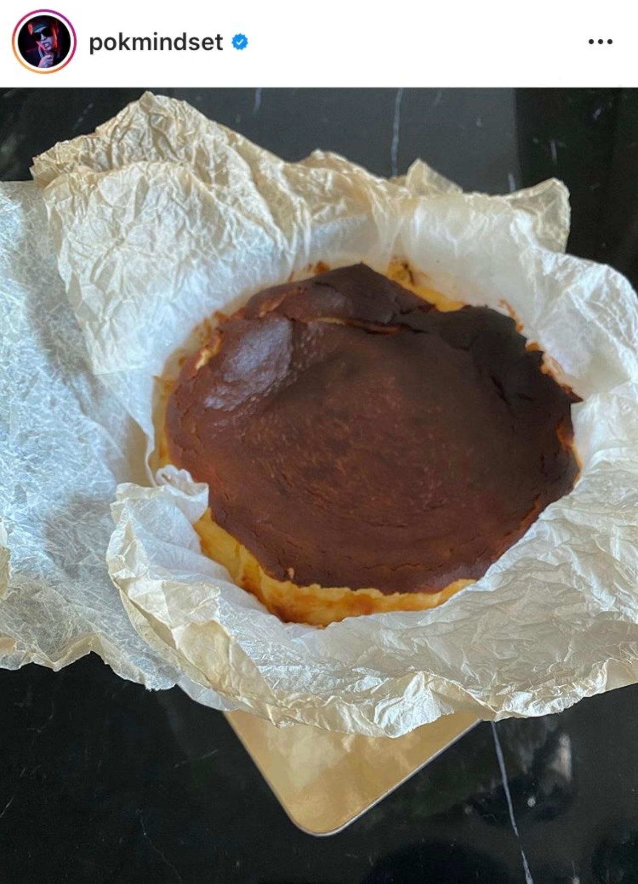 และในช่วงเวลาที่กักตัวอยู่บ้าน ภรรยาของผมก็ได้ฝึกทำ cheesecake สูตรต้นตำรับจากคุณย่าของเธอซึ่งมาจากประเทศสเปนแท้ๆ ชีสเค้กอันนี้เรียกว่า Basque Burnt Cheesecake หรือชีสเค้กหน้าไหม้แบบสเปน".