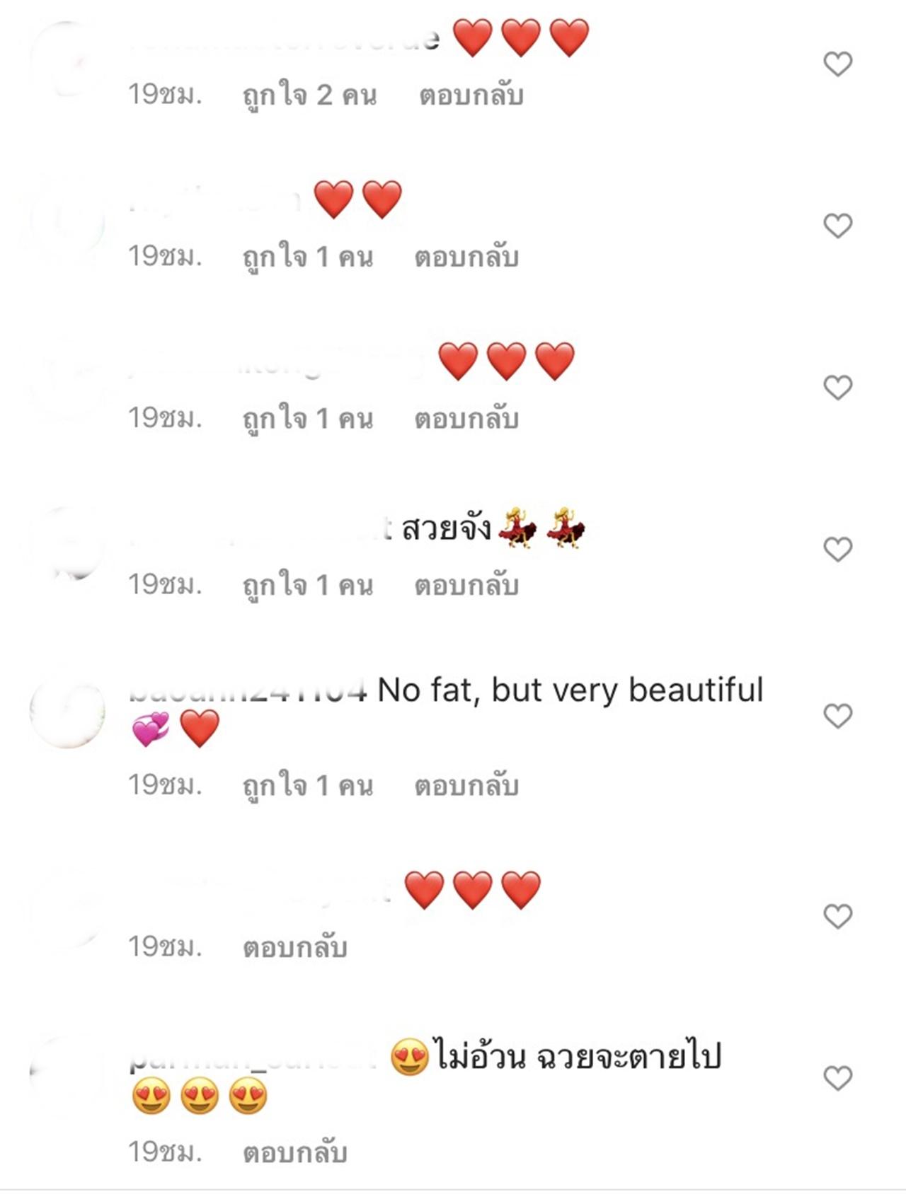 งานนี้ทำเอาหลายๆ คนต้องขยี้ตาดูดีๆ ว่า มิน อ้วนตรงไหน เพราะภาพที่ออกมานั้นหุ่นเพรียว มีเอวแต่ไม่มีหน้าท้องเลย ซึ่งแฟนๆ หลายคนต่างก็คอมเมนต์บอกว่า ไม่อ้วนเลยจ้า พร้อมกับชมว่า สวยและน่ารักมาก