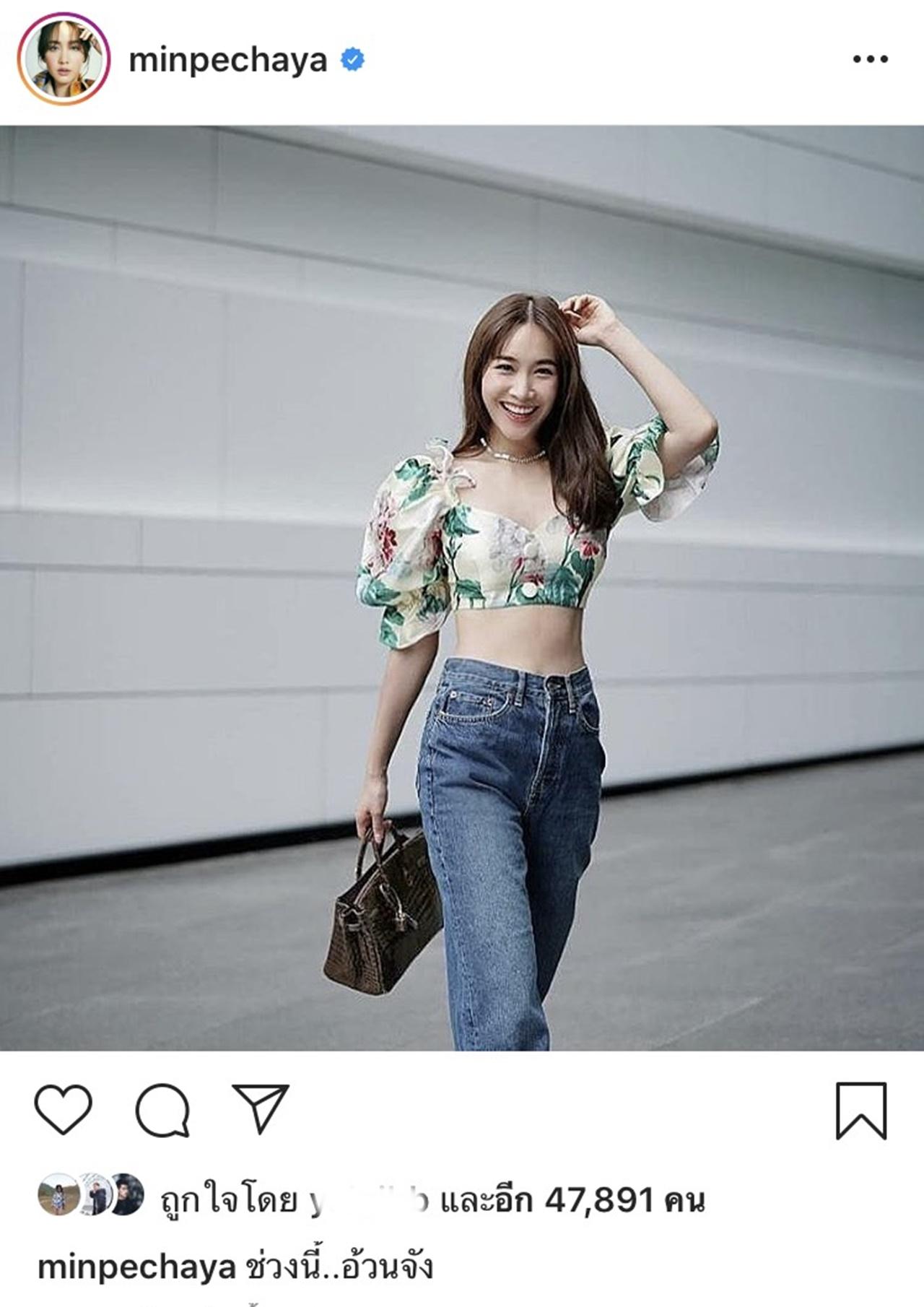 และล่าสุดเจ้าตัวก็ได้โพสต์ภาพในวันสบายๆ สวมกางเกงยีนส์ ใส่เสื้อเอวลอย เผยให้เห็นหน้าท้องที่แบนราบ แต่แคปชั่นนั้นกลับขัดกับภาพสุดๆ เมื่อมินเขียนแคปชั่นว่า "ช่วงนี้...อ้วนจัง"