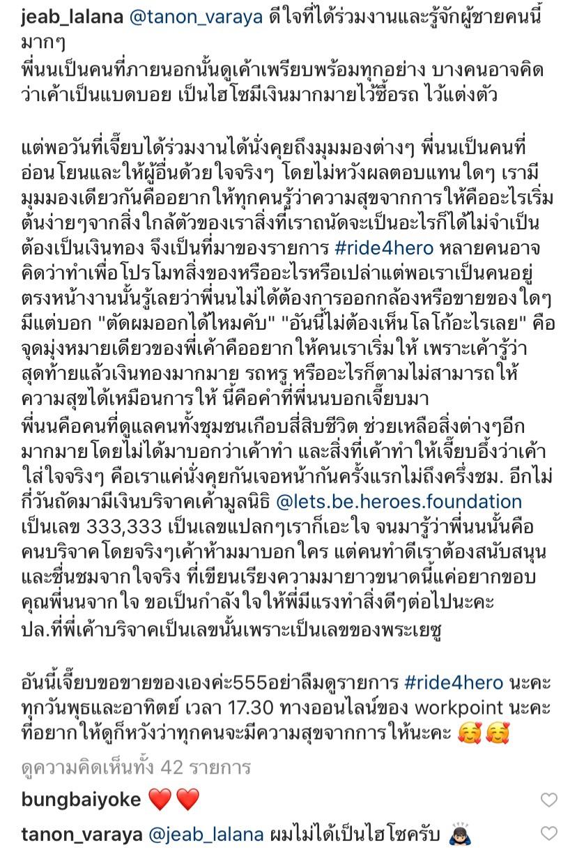 เรามีมุมมองเดียวกันคือ อยากให้ทุกคนรู้ว่าความสุขจากการให้คืออะไร เริ่มต้นง่ายๆ จากสิ่งใกล้ตัวของเรา สิ่งที่เราถนัด จะเป็นอะไรก็ได้ไม่จำเป็นต้องเป็นเงินทอง จึงเป็นที่มาของรายการ #ride4hero