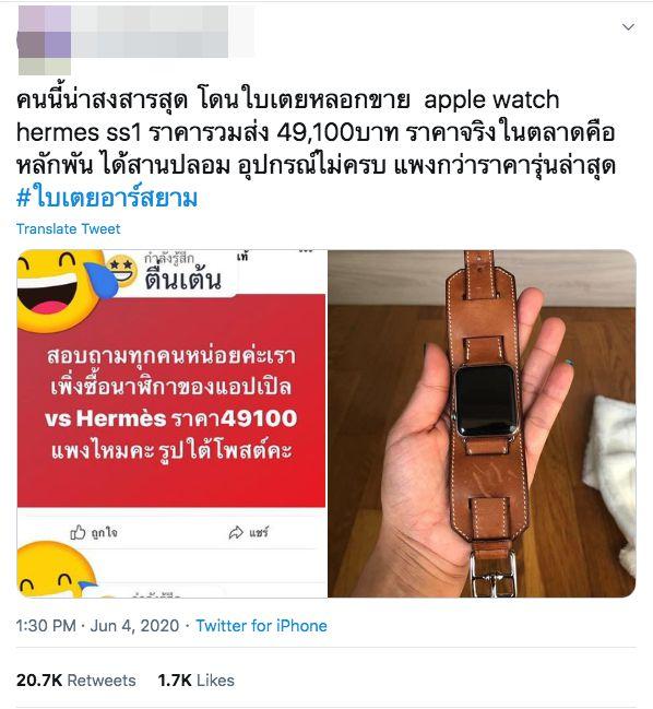 อีกทั้งยังมีบางคนที่บอกว่าโดนหลอกให้ซื้อของแบรนด์เนมมือสองจากนักร้องสาวในราคาสูงหลายหมื่นแถมได้งานปลอม แต่แท้ที่จริงของราคาแค่ไม่กี่พัน โดยบอกว่า “คนนี้น่าสงสารสุด โดนใบเตยหลอกขาย apple watch hermes ss1 ราคารวมส่ง 49,100 บาท ราคาจริงในตลาดคือหลักพัน ได้งานปลอม อุปกรณ์ไม่ครบ แพงกว่าราคารุ่นล่าสุด #ใบเตยอาร์สยาม”