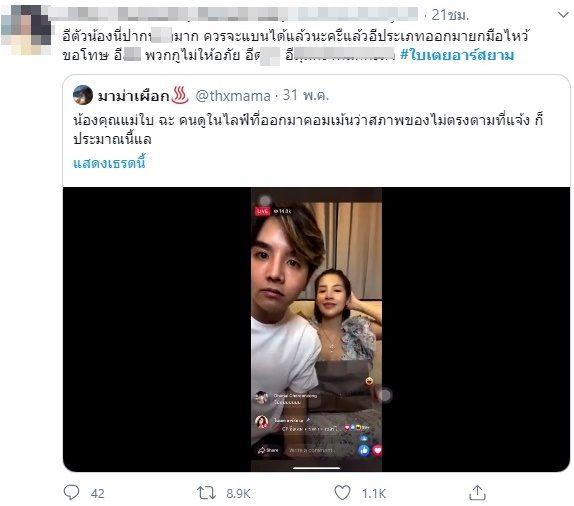 และยังมีอีกหลายคนที่โพสต์วิจารณ์ถึงการใช้ภาษาอังกฤษ รวมไปถึงความรู้เรื่องเกี่ยวกับแบรนด์เนมของใบเตย พร้อมทั้งบอกว่าเวลาใครเข้าไปวิจารณ์เรื่องการขายของ หรือเดือดร้อนหลังจากได้รับสินค้าไม่ตรงปกก็จะโดนบล็อกหมด บ้างก็วิจารณ์ถึงน้องชายของใบเตยที่ร่วมไลฟ์ขายของด้วย โดยบอกว่า “อีตัวน้องนี่ปากห_ามาก ควรจะแบนได้แล้วนะคะ แล้วอีประเภทออกมายกมือไหว้ขอโทษ อีสั_ พวกกูไม่ให้อภัย อีด_ก อีตุ๊_กะโหลกกะลา #ใบเตยอาร์สยาม”