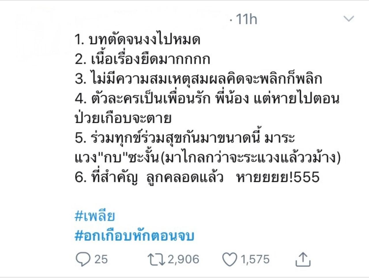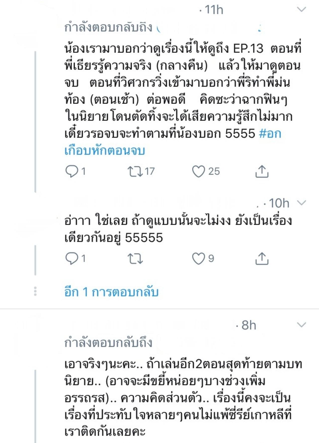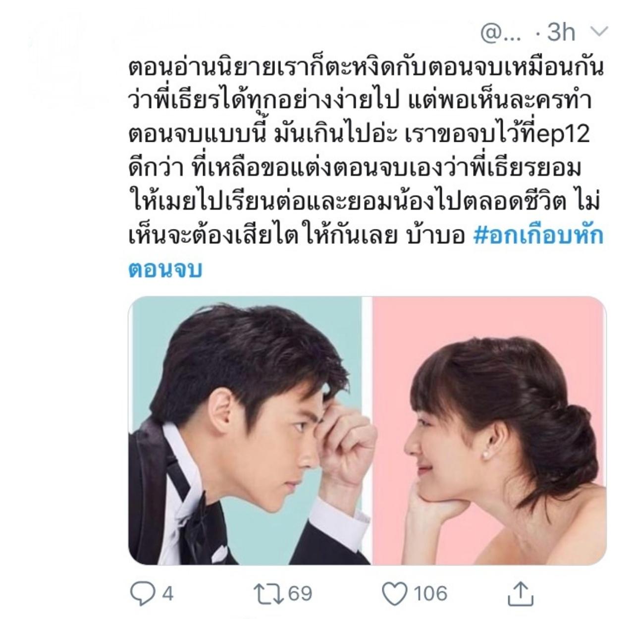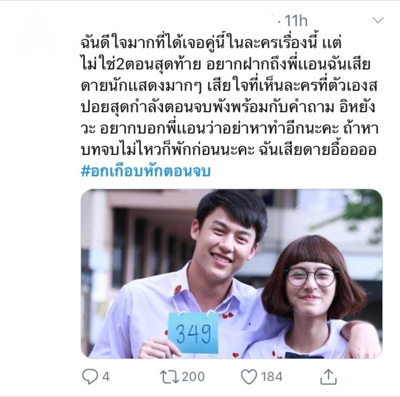 นอกจากนี้ หลายคนต่างก็บอกว่า ไม่อยากให้ละครเรื่องนี้จบ เพราะเคมีคู่พระนางของ หมาก ปริญ กับ มิว นิษฐา นั้นลงตัวดีมาก และหลงรักตัวละครทุกตัวในเรื่องนี้มากๆ โดยเฉพาะกลุ่มเพื่อนพระเอกที่มีความบอยแบนด์สุดๆ พร้อมกับร้องขอกับทางผู้จัดว่า ขอละครให้ หมาก มิว เล่นคู่กันอีกได้มั้ย