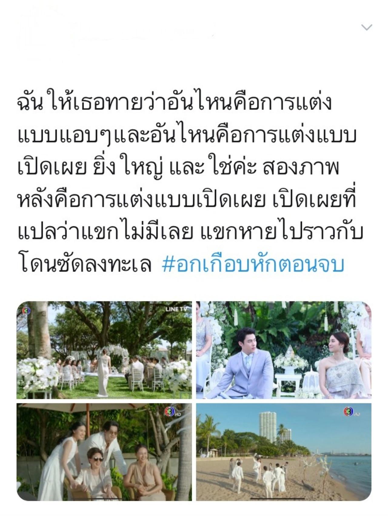 และยังมีประเด็นที่หลายคนสงสัยว่า บรรดาเพื่อนสนิท และคนที่ทำงานของ พี่เธียรกับเมย หายไปไหน ทำไมในตอนฉากงานแต่งงานถึงไม่มีมาร่วมแสดงความยินดี เพราะการแต่งครั้งแรกที่แต่งงานแบบแอบๆ คนมาร่วมงานเยอะมาก แต่พอเป็นการแต่งงานแบบเปิดเผย แขกในงานที่มานั้นมีแค่นิดเดียว ราวกับโดนซัดหายไปในทะเล