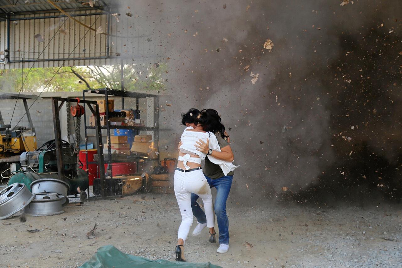 ผกก.รอน บรรจงสร้าง ยกกองไปถ่ายทำที่อู่รถ 10 ล้อ จ.นนทบุรี โดยฉากนี้ถือเป็นฉากสุดระทึกขวัญของ แนท กับ ตูมตาม เพราะต้องเล่นกับระเบิด ถึงแม้ ผกก.จะบอกชิลๆว่า มันก็แค่ระเบิดเอฟเฟกต์เอง! แต่ว่าถึงอย่างไรก็เป็นระเบิด ถ้าโดนเข้าจังๆก็เดดสะมอเร่ได้เหมือนกัน ดังนั้นทั้งสองจึงตั้งอกตั้งใจซักซ้อมคิวและจำบล็อกกิ้งอย่างจริงจังว่าระเบิดวางไว้จุดไหนบ้าง จะได้ไม่วิ่งทะเล่อทะล่าเข้าไป ถึงกระนั้น แนท ก็ยังอดกลัวเสียงดังไม่ได้ แต่ก็ขอโชว์สปิริตเล่นเองไม่ต้องใช้สตันต์ เมื่อพร้อมก็เริ่มถ่ายจริงทันที ตูมตาม กับ แนท เดินตรวจความเรียบร้อยในอู่ดวงพร แต่ก็ไม่เห็นสิ่งผิดปกติ จึงจะพากันเดินออกไป แต่ทันใดนั้นเองก็มีเสียงระเบิดตูมดังสนั่น แนท กรี๊ดลั่นด้วยความตกใจ ตูมตาม ก็โชว์แมนกระโดดเอาตัวเข้ากำบัง แนท ไว้ แรงระเบิดทำให้ทั้งคู่ล้มลงไปกับพื้น!...ทั้งสองยังมีร่างกายครบสามสิบสองอยู่มั้ย เป็นฝีมือใคร?...หาคำตอบได้ในคืนนี้ 1 ทุ่มตรง ทางช่องวัน 31.