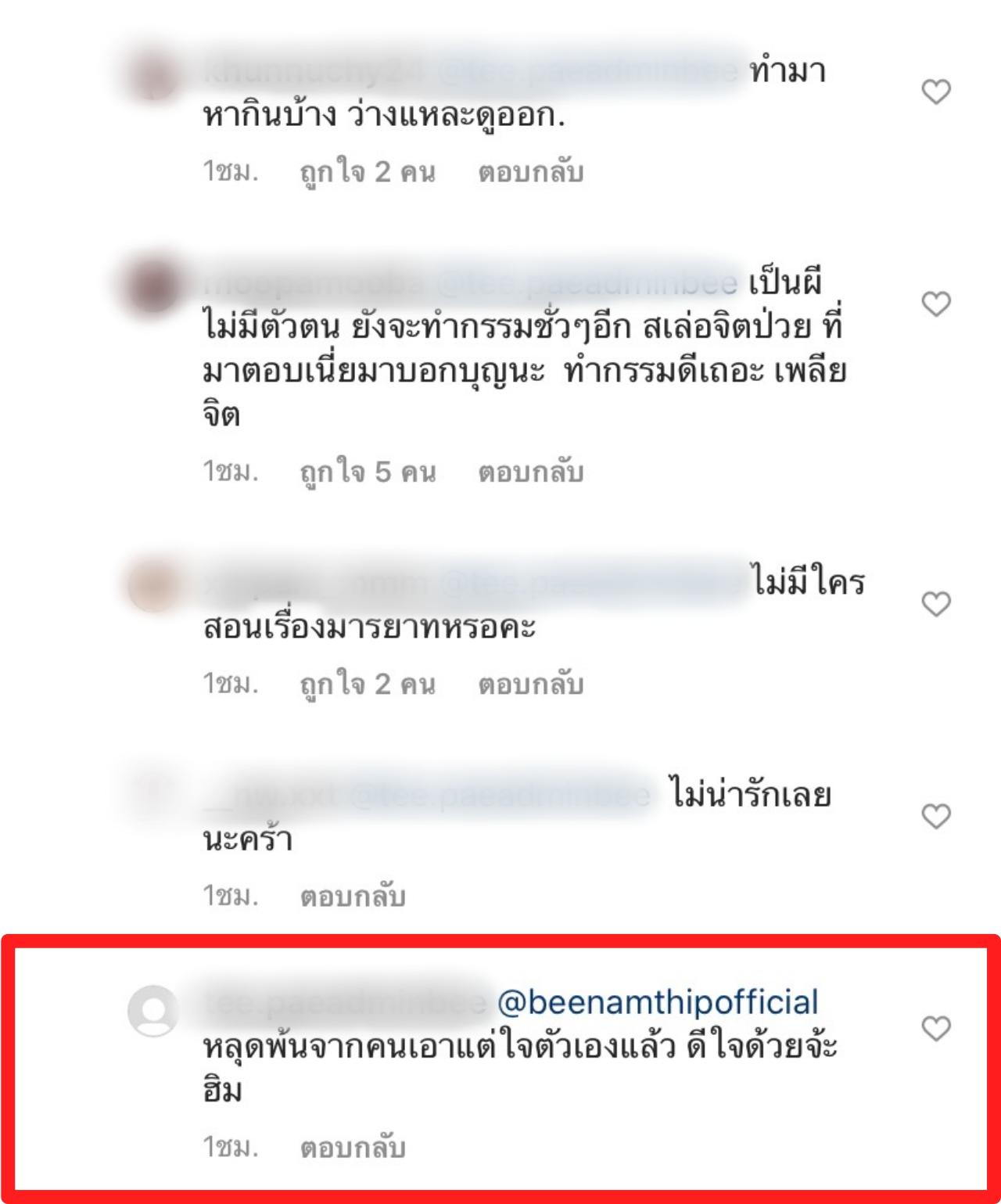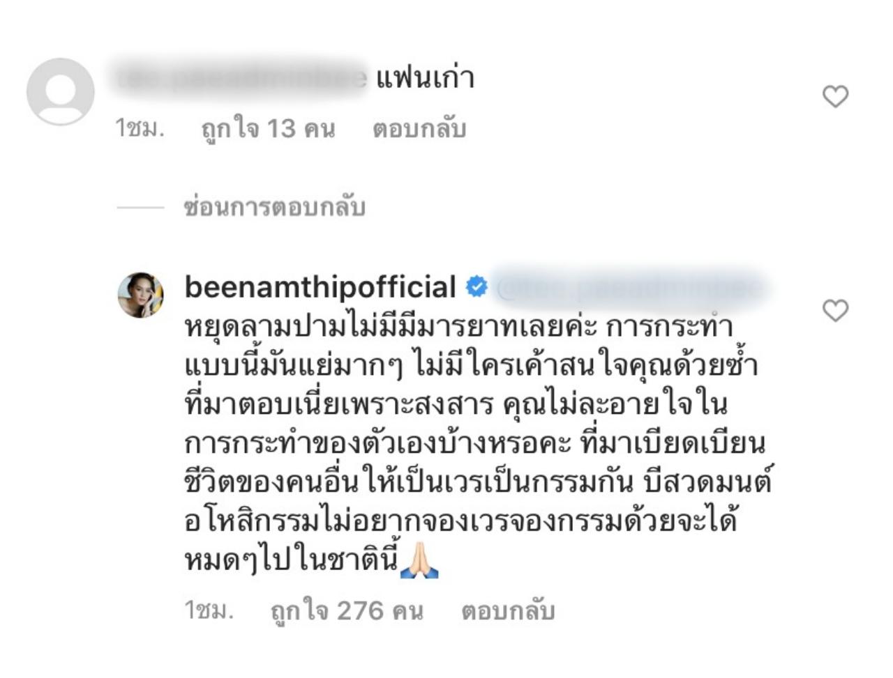 เจอคนคอมเมนต์แรงแบบนี้ก็เลยสวนกลับทันทีว่า “หยุดลามปามไม่มีมารยาทเลยค่ะ การกระทำแบบนี้มันแย่มากๆ ไม่มีใครเค้าสนใจคุณด้วยซํ้าที่มาตอบเนี่ยเพราะสงสาร