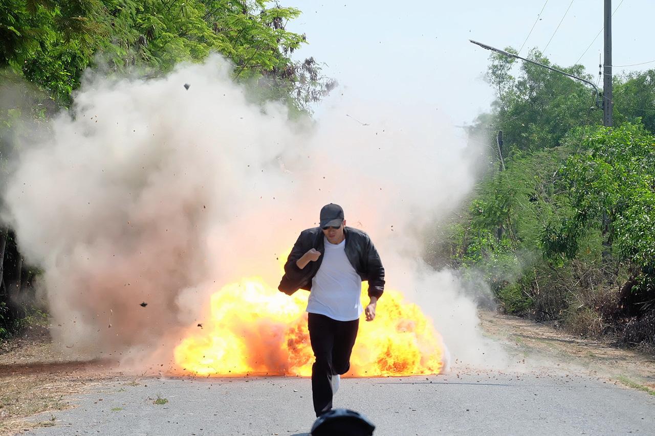 การถ่ายทำฉากนี้ ผกก. ประสิทธิ รสหวาน ขอจัดหนักเพื่อถ่ายทอดความรักของพ่อที่มีต่อลูกออกมาให้ชัดเจน ด้าน แชป ก็อินเนอร์ในบทคุณพ่อมาเต็มถึงกับออกปากว่า “ผมขอเล่นเอง ทั้งหมด” ดังนั้นเจ้าตัวเลยเจอกับศึกหนักทั้งการต่อสู้แบบมือเปล่า แถมยังต้องวิ่งหนีระเบิดที่ไล่หลังแบบเผาขน งานนี้แชป ต้องตั้งใจซักซ้อมเต็มที่ พร้อมกับจำจุดมาร์กระเบิดให้แม่น ไม่งั้นวิ่งเข้าไปในรัศมีทำการละก็ ฮึ่ม!! พอถ่ายจริง แชป ก็สวมวิญญาณซุปเปอร์ฮีโร่บุกเดี่ยวเข้าไปช่วยลูกๆ แต่ก็ทุลักทุเลพอควรเพราะต้องผ่านหลายด่านก่อนจะวิ่งหนีระเบิดที่ไล่หลังจนเสียววูบ!!... ติดตามชม “พ่อหม้ายเลขท้าย 2 ตัว” ทุกวันจันทร์-ศุกร์ 19.00 น. เริ่มตอนแรก วันนี้ ทางช่อง 7 HD.