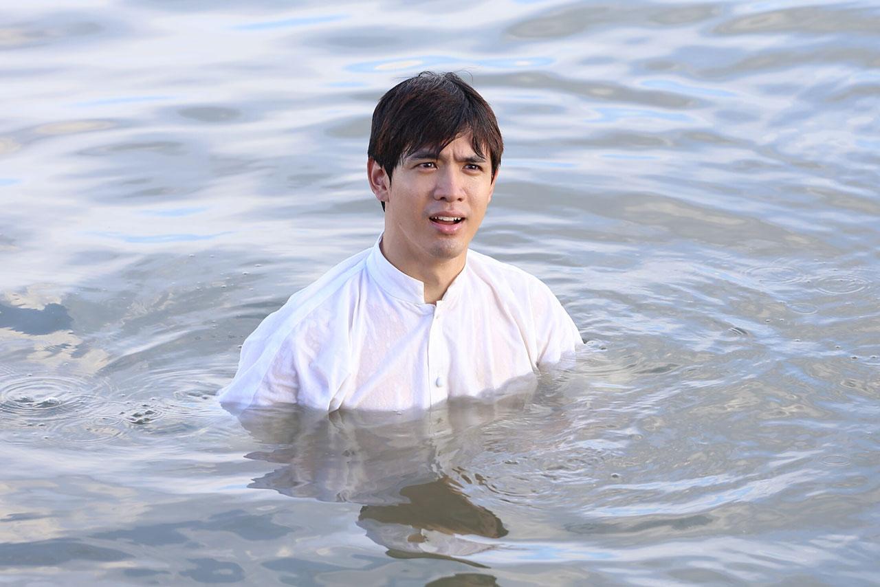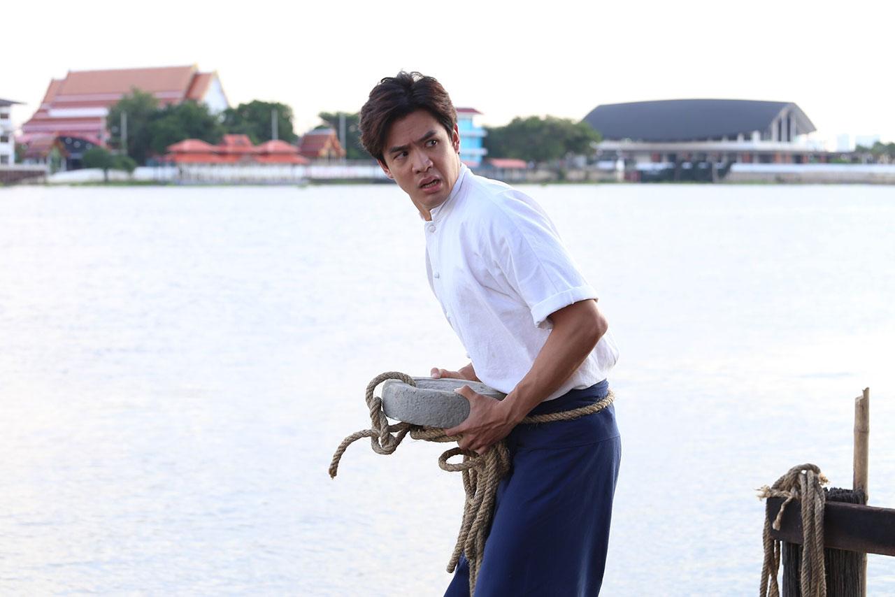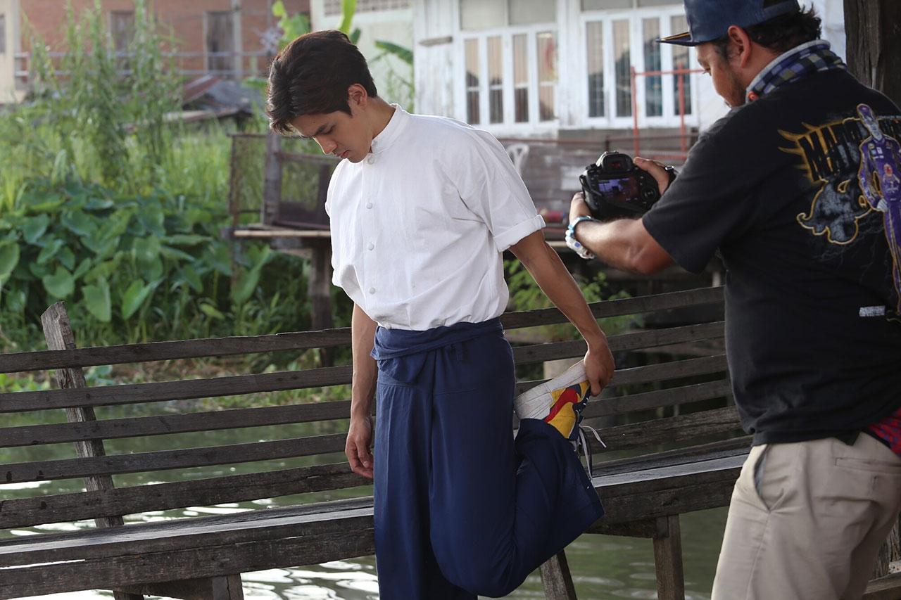 เบื้องหลังฉากนี้ได้ยกกองไปถ่ายทำกันริมแม่น้ำเจ้าพระยา ซึ่งหนุ่มฟิล์มจะต้องกระโดดน้ำจริงๆ แบบไม่ใช้ตัวแสดงแทน งานนี้หนุ่มฟิล์มยิ้มร่าไม่หวั่น เพราะเตรียมตัวฟิตร่างกายมาอย่างดี เมื่อพร้อมผู้กำกับก็เรียกฟิล์มมาซักซ้อมคิวนัดแนะ แล้วสั่งเดินกล้องทันที เริ่มที่ฟิล์มคิดหาทางกลับไปยังโลกปัจจุบันให้ได้ เพราะคิดถึงการใช้ชีวิตที่แสนสุขสบายในยุคปัจจุบัน จึงแอบหนีออกมาจากบ้าน จนมาหยุดที่ท่าน้ำแห่งหนึ่ง