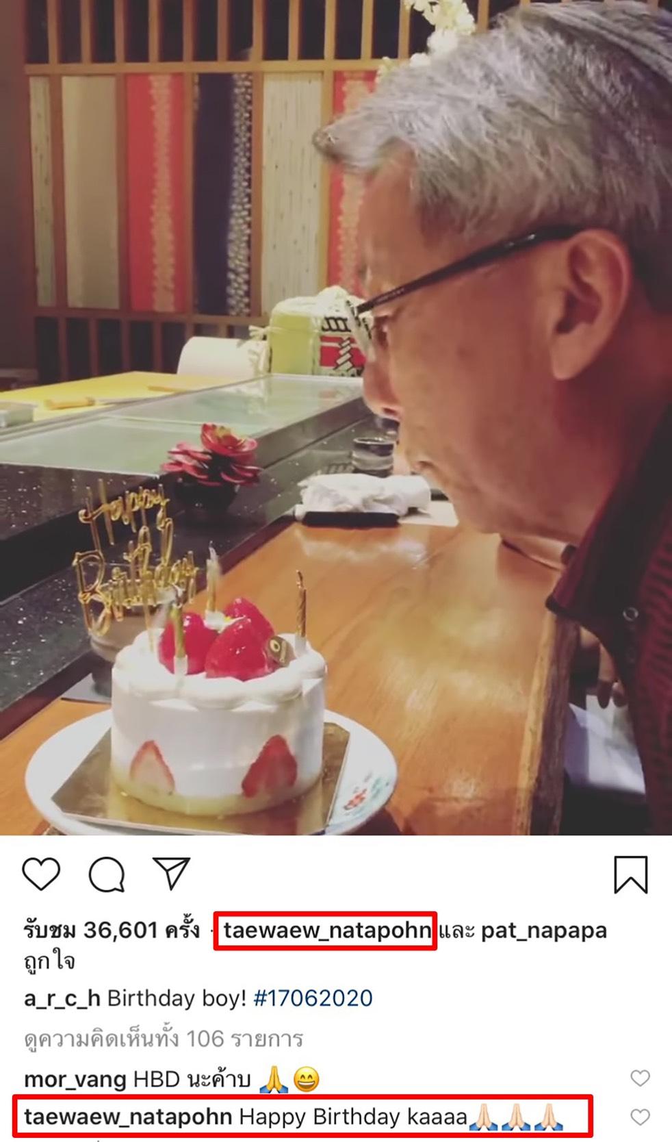 ล่าสุด หนุ่มต้นได้โพสต์คลิปฉลองวันเกิดของคุณพ่อ ซึ่งหลังจากที่ ต้น อาชว์ ได้โพสต์คลิปดังกล่าวไป แต้ว ณฐพร ก็ได้เข้าไปกดไลค์และคอมเมนต์อวยพรวันเกิดคุณพ่อของหนุ่มต้นว่า Happy Birthday kaaaaa พร้อมอีโมจิพนมมือ